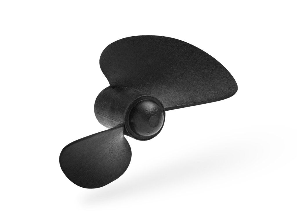 Dvoulistý levotočivý lodní šroub 35 mm pro montáž pod loď, stoupání 30 stupňů, plast plněný skelnými vlákny, závit M4.Doplňkové parametry