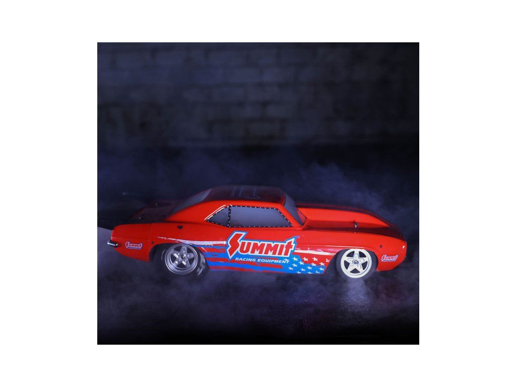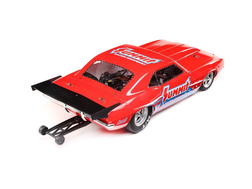 RC model rychlostního auta Losi 22S Dragster 1:10 Chevrolet Camaro 1968 RTR pro závody na přímé trati s inovativním designem. Pohon výkonným střídavým motorem. RC vysílač Spektrum SLT3.