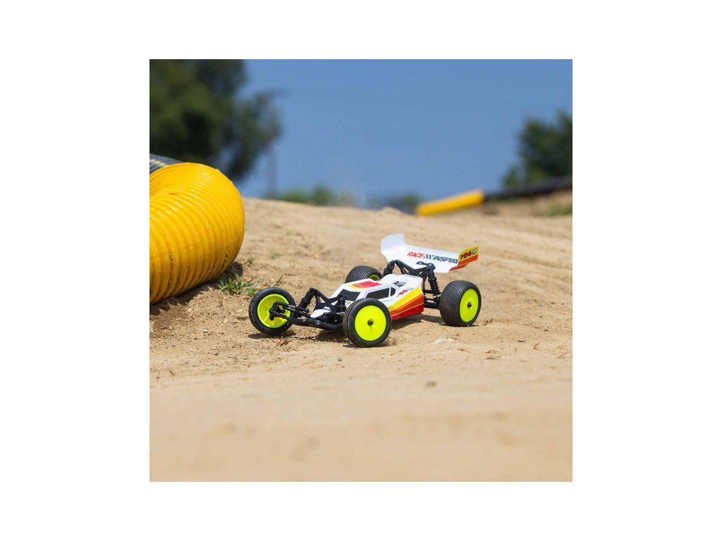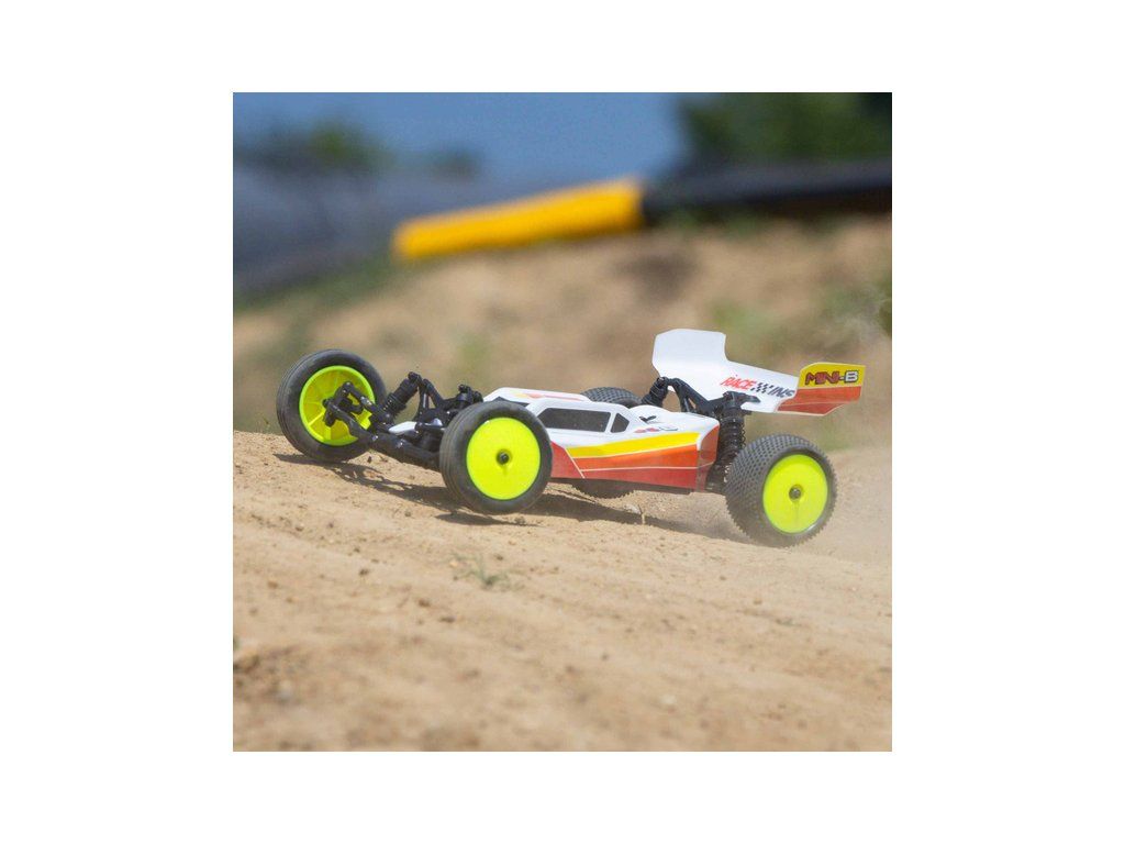 Populární RC model auta Buggy Losi Mini-B v měřítku 1:16, je vybaven výkonným střídavým pohonem pro rychlou dravou jízdu. Má RTR vybavení, vysílač Spektrum SLT 2.4GHz, přijímač SR315, LiPol baterii Smart G2 810mAh 2S, servo řízení s kovovými převody a nabíječ Smart LiPo USB-C.