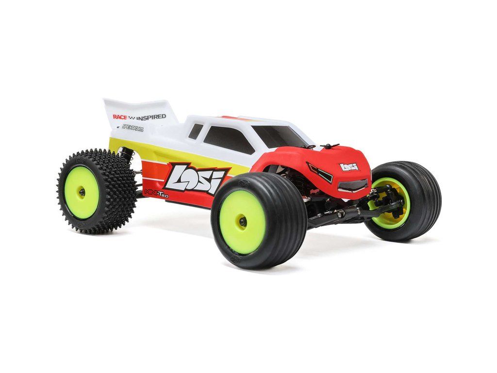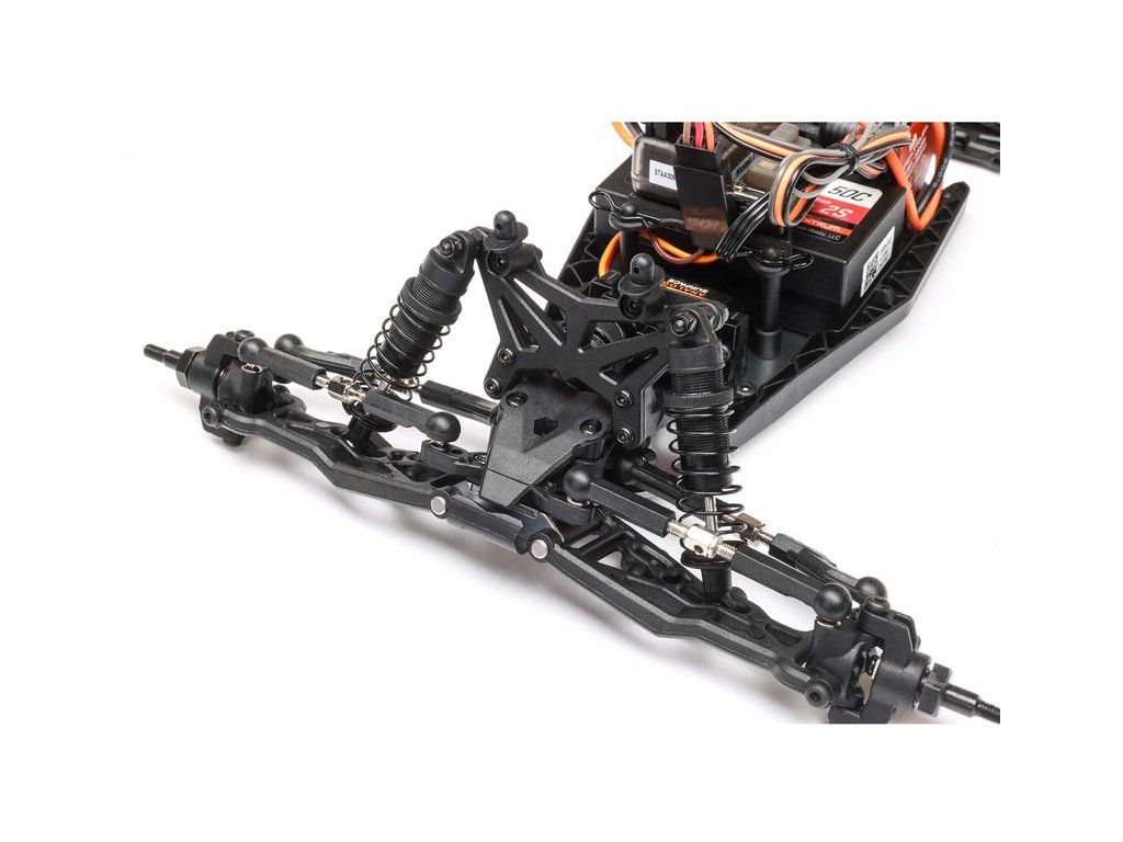 RC model auta Losi Mini-T 2.0 BL V2 v měřítku 1:18 je připraven k jízdě. Můžeš jezdit v terénu i na silnici, dlouhá ramena náprav s vysokým zdvihem si snadno poradí s každým povrchem. Výkonný střídavý motor, hliníkové šasi, baterie Spektrum™ Smart 810mAh 2S, Smart G2 2S LiPo USB-C nabíječ, vysílač SLT.