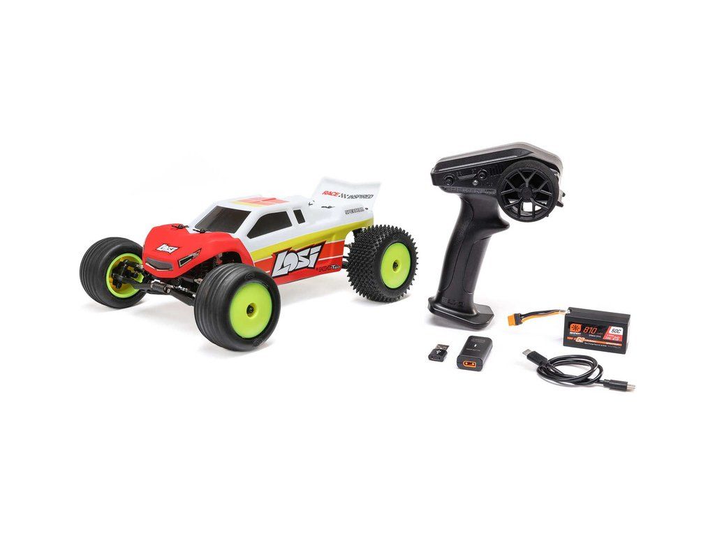 Obsahem balení je hotové sestavené auto Losi® 1/18 Mini-T 2.0 V2 Brushless RTR Stadium Truck, s nainstalovanými komponenty: combo Firma motor-regulátor 2v1 6000Kv, Spektrum servo SX108 Micro, Spektrum přijímač SR315 DSMR SLT 3CH. V setu je obsažen vysílač Spektrum SLT3, baterie Spektrum Smart G2 LiPo 7.4V 810mAh 50C HC IC2, Spektrum nabíječ LiPo G2 Smart S10 IC2, USB-C a baterie do vysílače 4ks AA. Návod v češtině, manuál EN, DE, FR, IT.