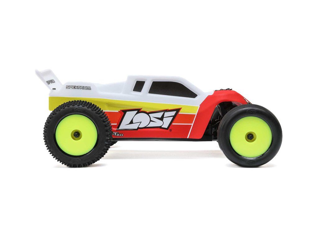 RC model auta Losi Mini-T 2.0 BL V2 v měřítku 1:18 je připraven k jízdě. Můžeš jezdit v terénu i na silnici, dlouhá ramena náprav s vysokým zdvihem si snadno poradí s každým povrchem. Výkonný střídavý motor, hliníkové šasi, baterie Spektrum™ Smart 810mAh 2S, Smart G2 2S LiPo USB-C nabíječ, vysílač SLT.