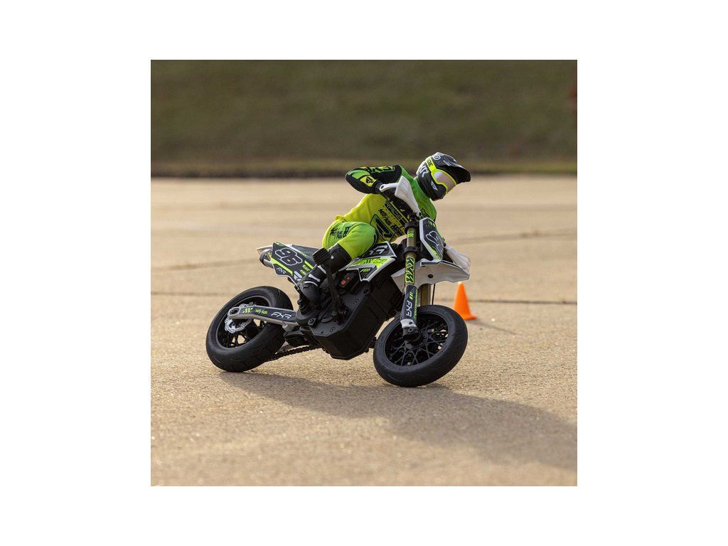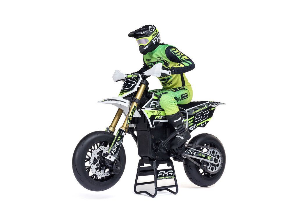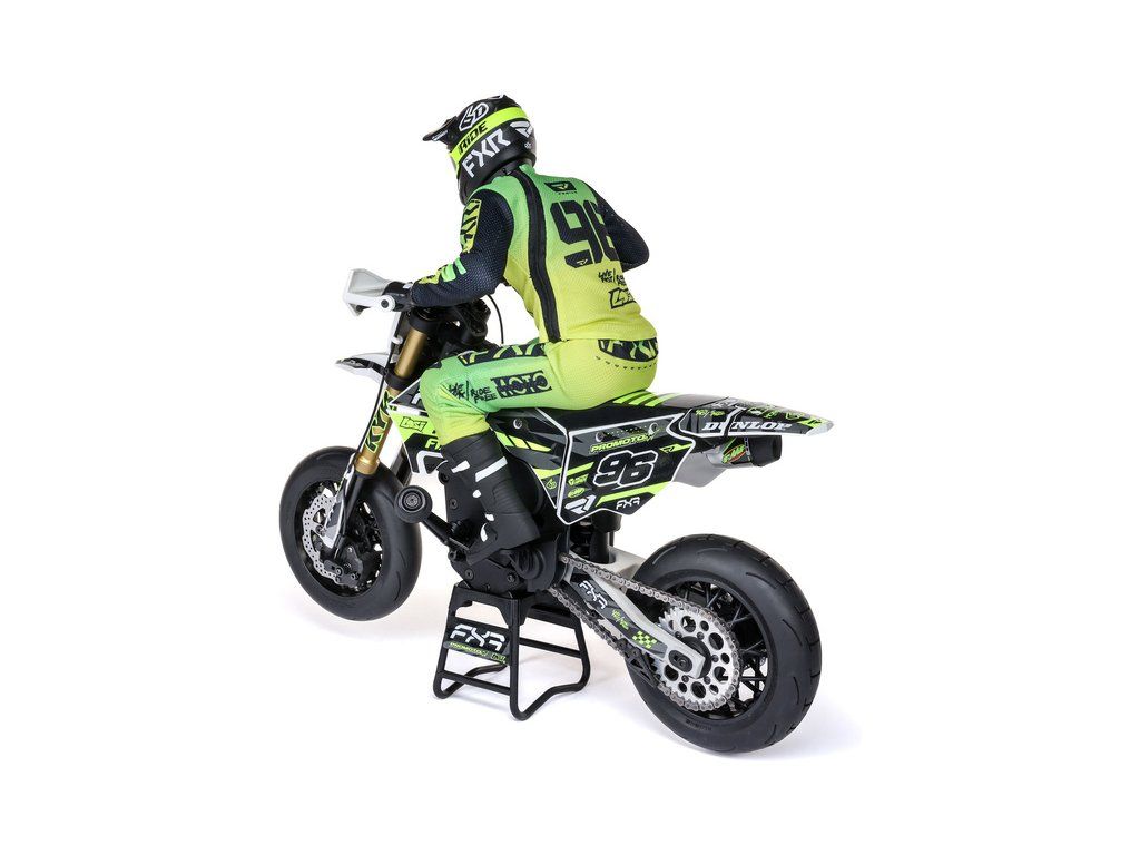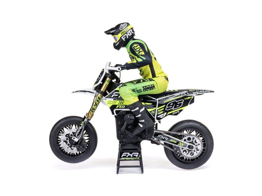 RC model motorky Losi Promoto-SM třídy supermoto v měřítku 1:4, která vypadá a funguje stejně jako skutečná. Střídavý pohon udělí rychlost až 65 km/h, vylepšená funkční přední brzda, vysoce realistické zpracování. V balení je vše potřebné včetně akumulátoru a nabíječe.