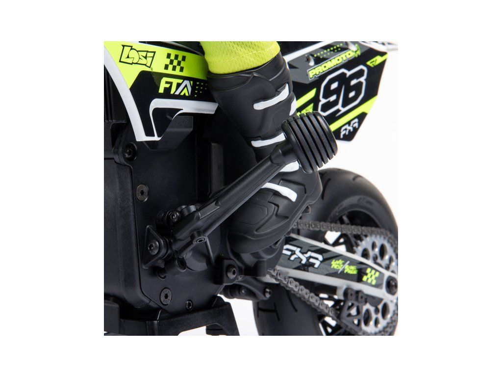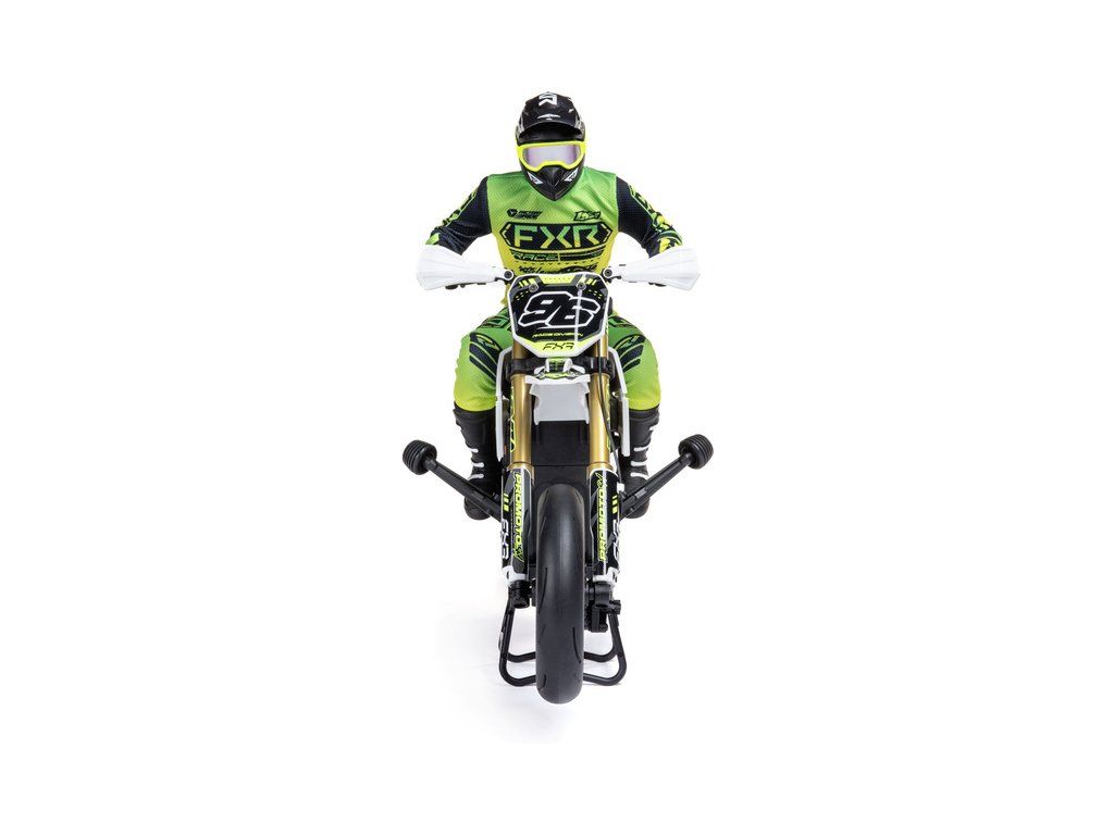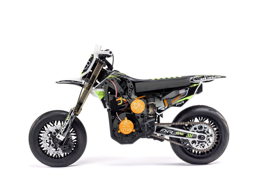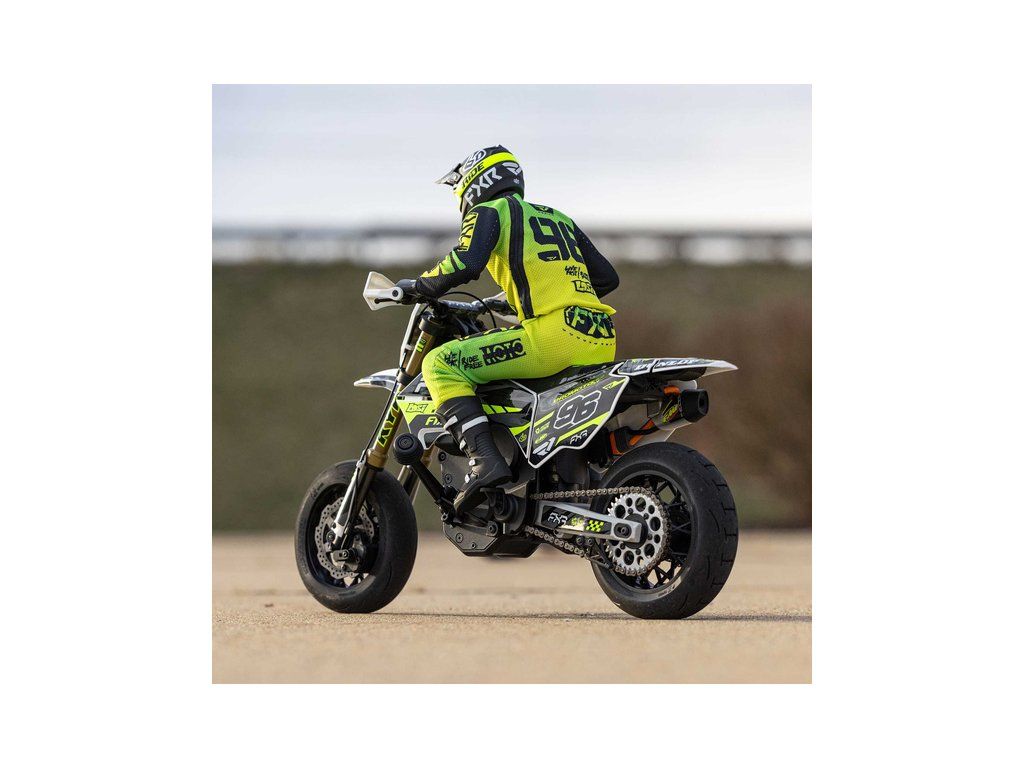 RC model motorky Losi Promoto-SM třídy supermoto v měřítku 1:4, která vypadá a funguje stejně jako skutečná. Střídavý pohon udělí rychlost až 65 km/h, vylepšená funkční přední brzda, vysoce realistické zpracování. V balení je vše potřebné včetně akumulátoru a nabíječe.