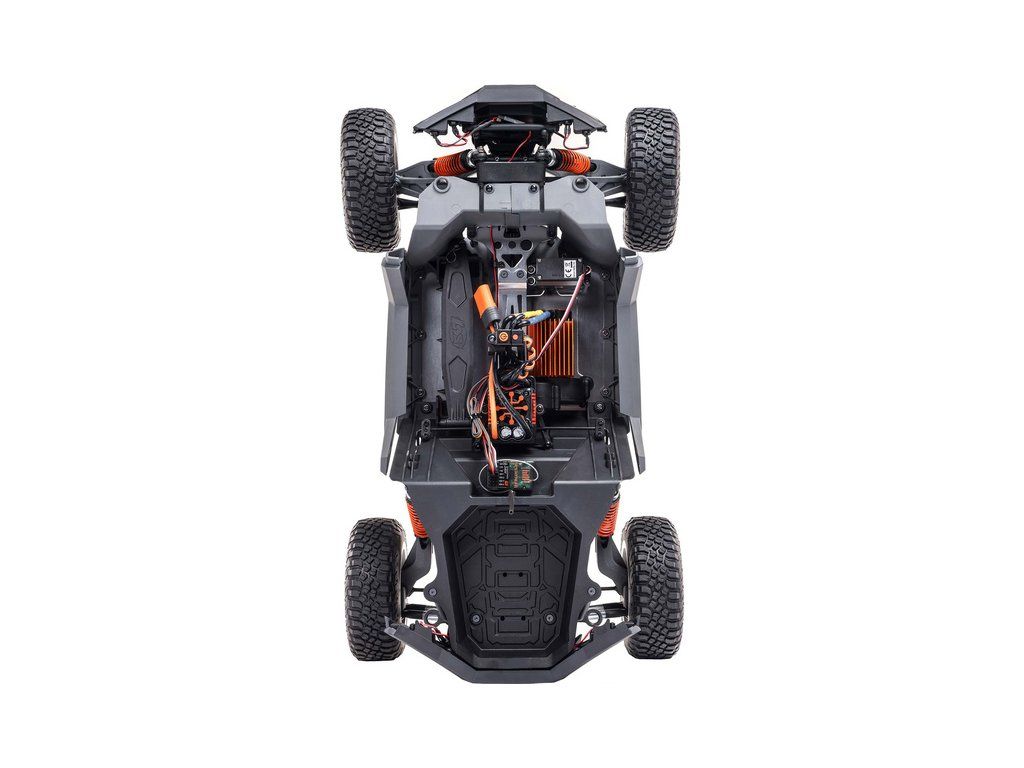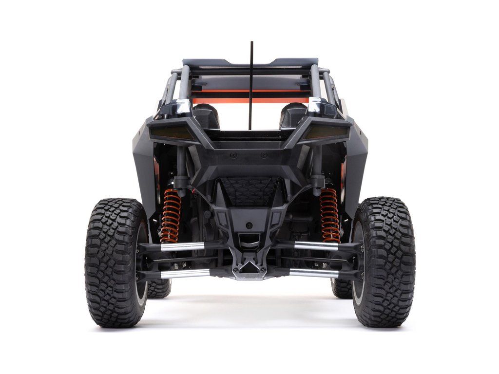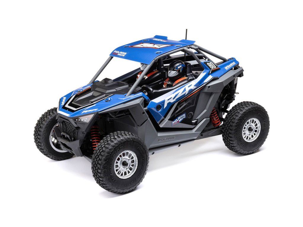 RC model auta Desert Buggy 1:10, Losi Polaris RZR Pro R na novém podvozku Losi Baja Rey. Proto Polaris RZR Pro R skvěle vypadá a má vynikající ovladatelnost v terénu. Hliníkové šasí 6061-T6, nezávislá vlečená ramena, střídavý motor, vysílač Spektrum s AVX, LED osvětlení.