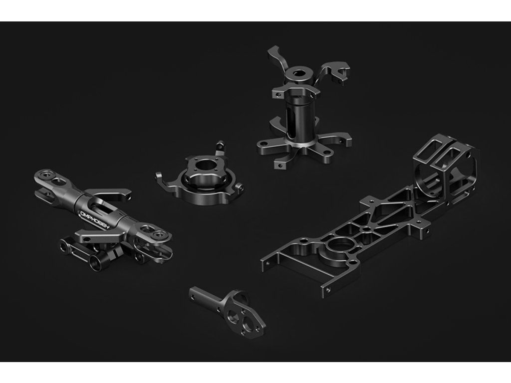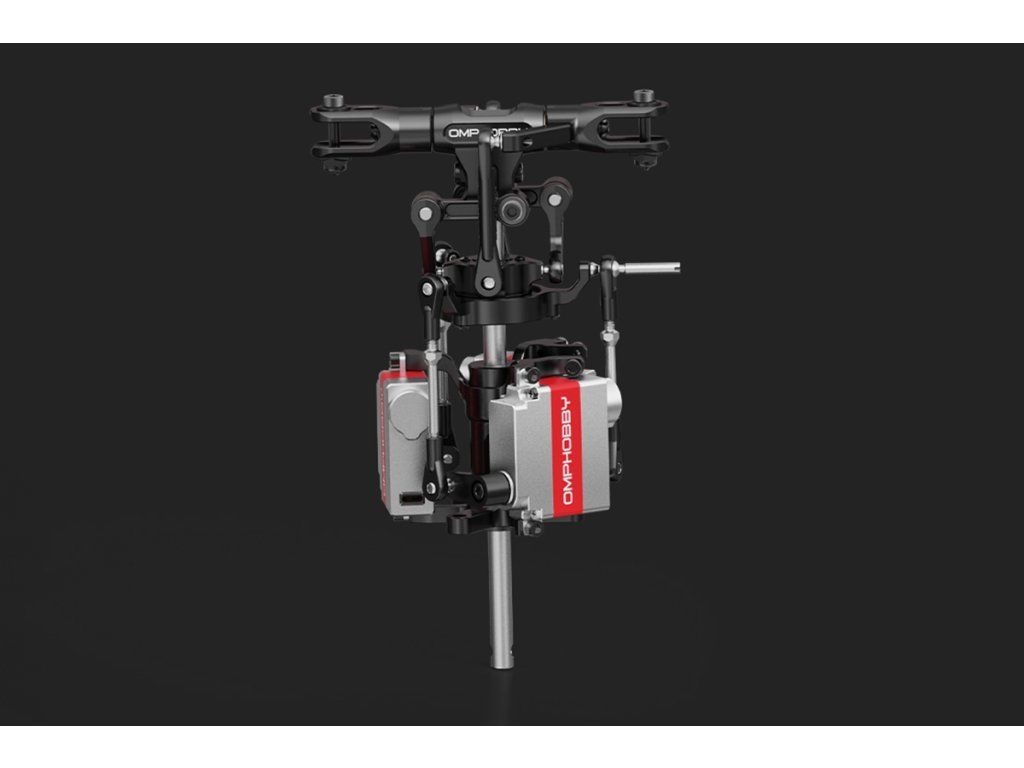 Elektroniku vrtulníku tvoří inteligentní řídící jednotka s novou 3G flybarless řídící jednotkou OFS3 s integrovaným elektronickým regulátorem otáček s funkcí governoru pro motor nosného rotoru a regulátorem pro motor vyrovnávacího rotoru; a tři 10g digitální serva DS2710MG (1,65 kg.cm, 0,08 s/60°) ovládající CCPM (120°) mixovanou desku cykliky. Pro řízení vrtulníku budete potřebovat aspoň šestikanálovou RC soupravu s miniaturním přijímačem s S.BUS portem (nebo také DSM2/DSMX a nově rovněž s obousměrným CRSF protokolem s telemetrií - podporovány jsou systémy TBS Crossfire, Tracer a ExpressLRS). Pro obyčejné poletování nemusí být vysílač ani počítačový (všechny potřebné mixy obstarává řídící jednotka), stačí jen 4 kanály „na kniplech“ a pátý kanál s dvoupolohovým přepínačem pro přepínání režimů řídící jednotky se stabilizací a 3D. Samozřejmě, pro plnohodnotné klasické a 3D létání je třeba počítačový vysílač s nastavitelnými 2-3 letovými režimy s aspoň pětibodovými křivkami kolektivu pro visení a akrobacii a dalším režimem pro autorotaci. Díky rozsáhlým možnostem nastavování řídící jednotky v mobilní aplikaci (včetně detailního nastavování PIDF regulačních smyček) je možné většinu nastavení, které dříve vyžadovaly pokročilou počítačovou RC soupravu, provést na vašem mobilu v aplikaci (pro operační systémy iOS i Android). Můžete, ale nemusíte - řídící jednotka je dodávána přednastavená; její základní parametry je v případě potřeby možné dolaďovat také pomocí programovacího tlačítka a indikačních LED na řídící jednotce, jako tomu bylo u starších verzí řídících jednotek OMPHOBBY.