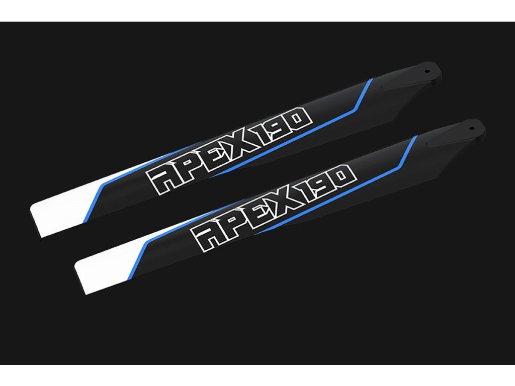 Robustní 4 mm hlavní hřídel je uložena v kuličkových ložiscích. Deska cykliky je duralová stejně jako rotorová hlava s unašeči listů. Díky 3G flybarless systému a elektronickému CCPM je rotorová hlava s nově optimalizovanou geometrií a zvětšeným rozsahem výchylek cyklického a kolektivního řízení velmi jednoduchá. Unašeče listů nosného rotoru jsou nádhernou miniaturou unašečů „velkých" RC vrtulníků - se všemi těmi kuličkovými ložisky a tlumícími vložkami! Nové rotorové listy APEX 190 nabízejí vyšší účinnost a nižší hlučnost; přitom mají dostatečnou tuhost na zvládnutí většího rozsahu výchylek řízení.