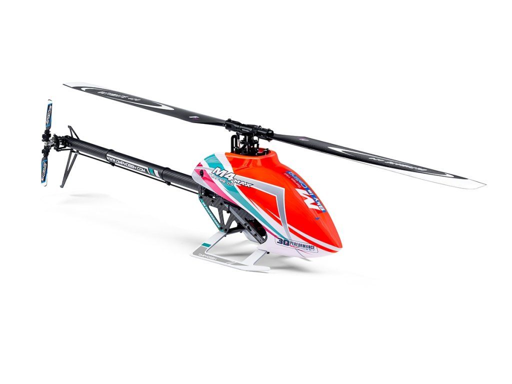 Oblíbený 3D vrtulník třídy „380" M4 si teď můžete pořídit v nové super výkonné verzi M4 MAX. MAX má, stejně jako „eM-čtyřka“, CCPM desku cykliky 120° s flybarless „bezpádlovou“ rotorovou hlavou. Nový výkonnější střídavý motor přímo pohání nosný rotor o průměru 945 mm; vyrovnávací rotor na prodlouženém uhlíkovém ocasním nosníku je poháněn prostřednictvím širšího ozubeného řemínku pro spolehlivý přenos vší té síly. Nainstalovat můžete vaši oblíbenou flybarless řídící jednotku a serva, aspoň 80A regulátor otáček, ideálně s funkcí governoru, 6S LiPo akumulátor 2200 mAh a samozřejmě spolehlivou RC soupravu.