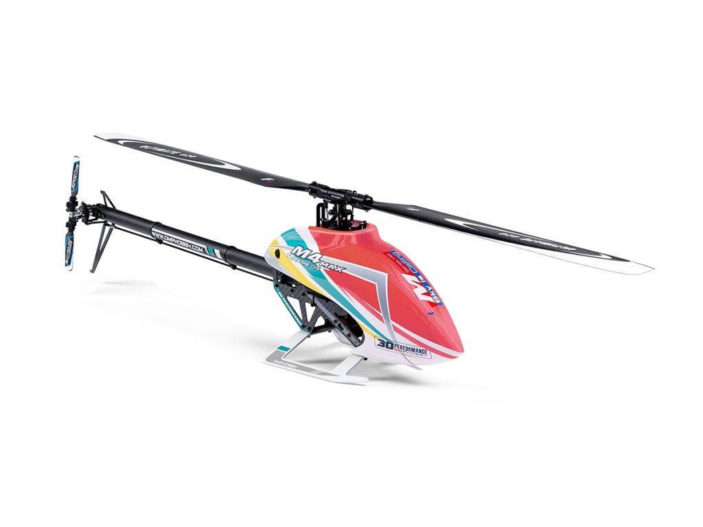 Oblíbený 3D vrtulník třídy „380" M4 si teď můžete pořídit v nové super výkonné verzi M4 MAX. MAX má, stejně jako „eM-čtyřka“, CCPM desku cykliky 120° s flybarless „bezpádlovou“ rotorovou hlavou. Nový výkonnější střídavý motor přímo pohání nosný rotor o průměru 945 mm; vyrovnávací rotor na prodlouženém uhlíkovém ocasním nosníku je poháněn prostřednictvím širšího ozubeného řemínku pro spolehlivý přenos vší té síly. Nainstalovat můžete vaši oblíbenou flybarless řídící jednotku a serva, aspoň 80A regulátor otáček, ideálně s funkcí governoru, 6S LiPo akumulátor 2200 mAh a samozřejmě spolehlivou RC soupravu.