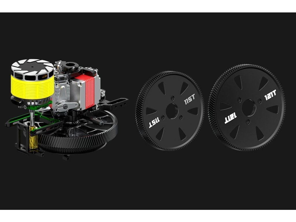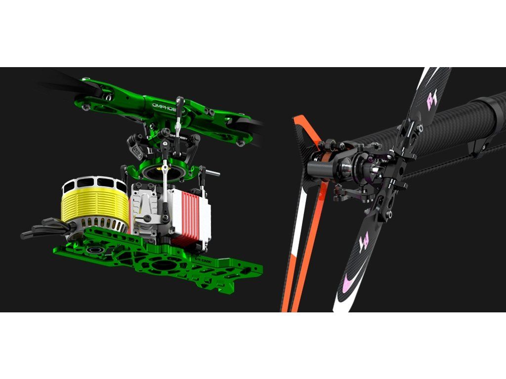 - Celokovová rotorová hlava z vysokopevnostního duralu 7075 s velkým rozsahem výchylek pro vynikající odezvu a autoritu řízení