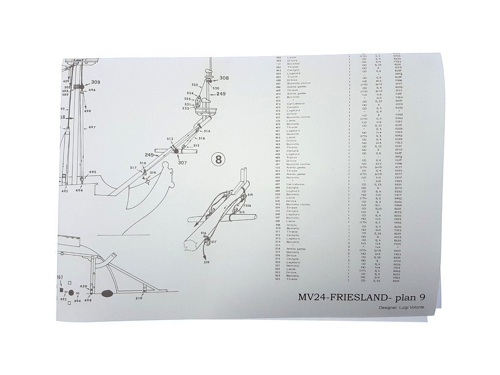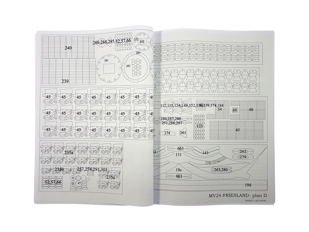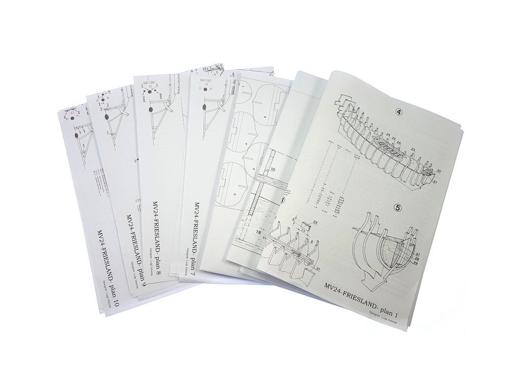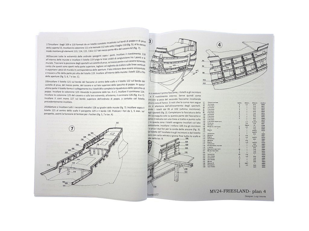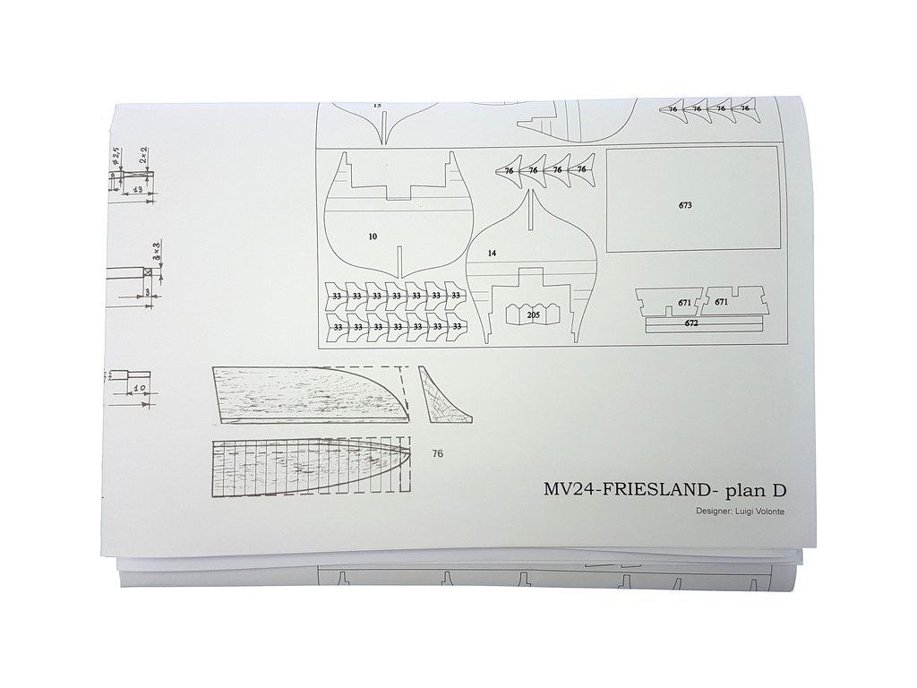 Stavebnice neplovoucího modelu lodi MAMOLI Friesland 1663 v měřítku 1:75. Délka modelu 775 mm, výška 714 mm. Stavba převážně ze dřeva s bohatými doplňky, součástí je stavební plán. Autentické detaily, 80 děl, propracované kovové odlitky. Laserem řezané díly.