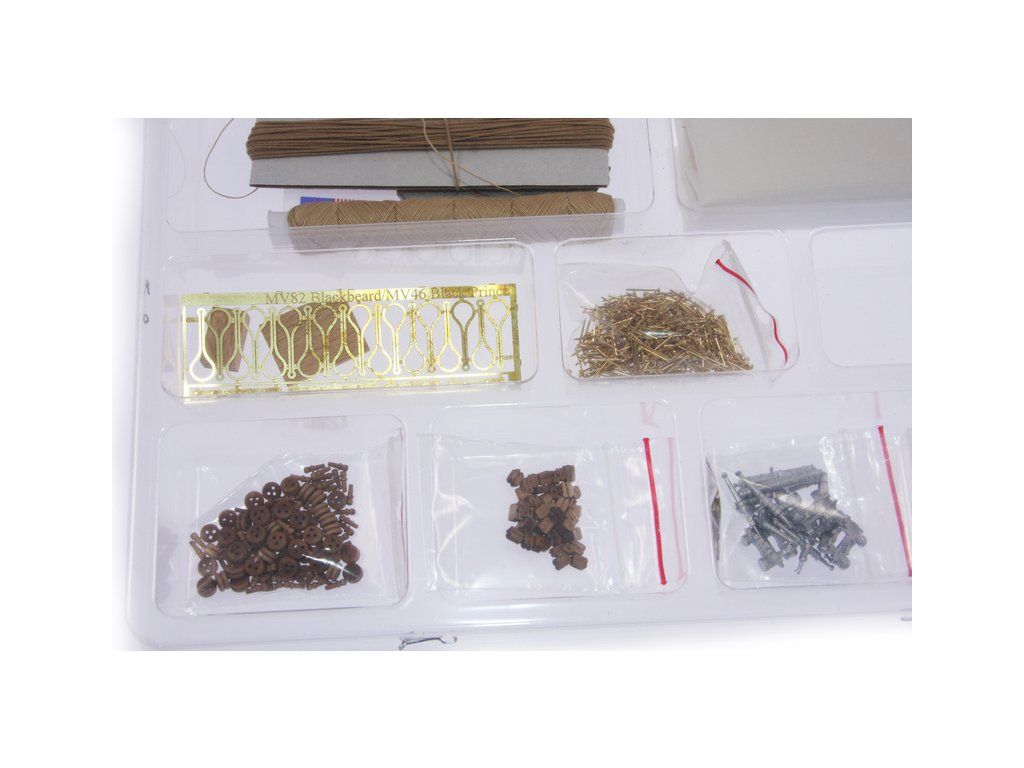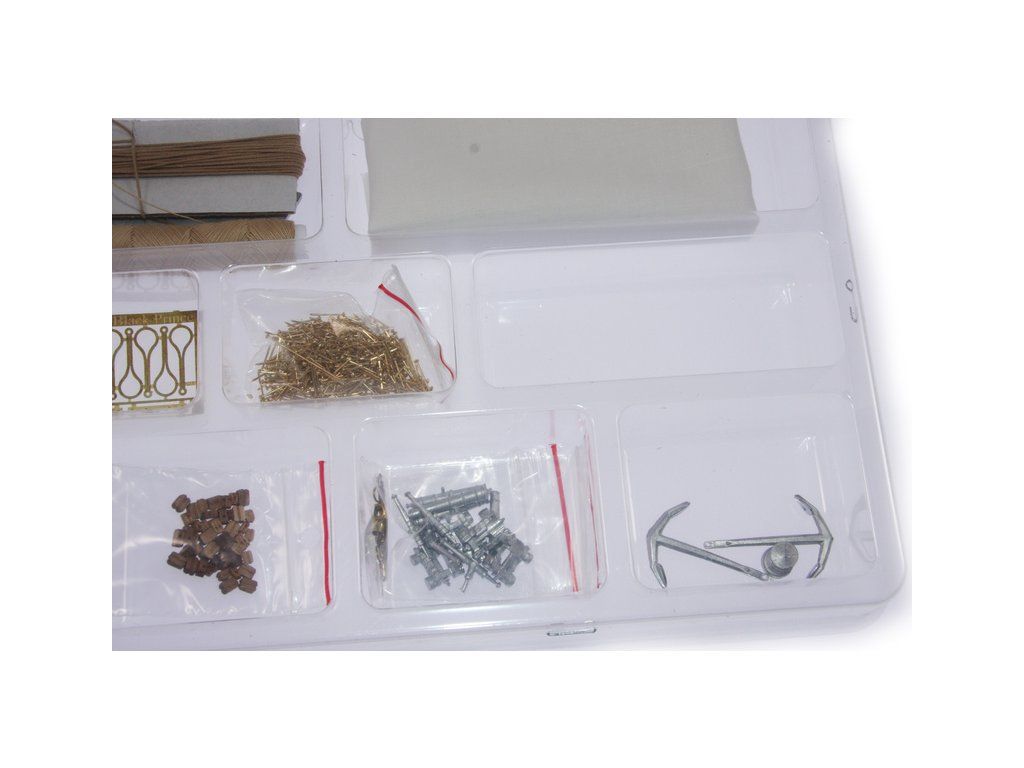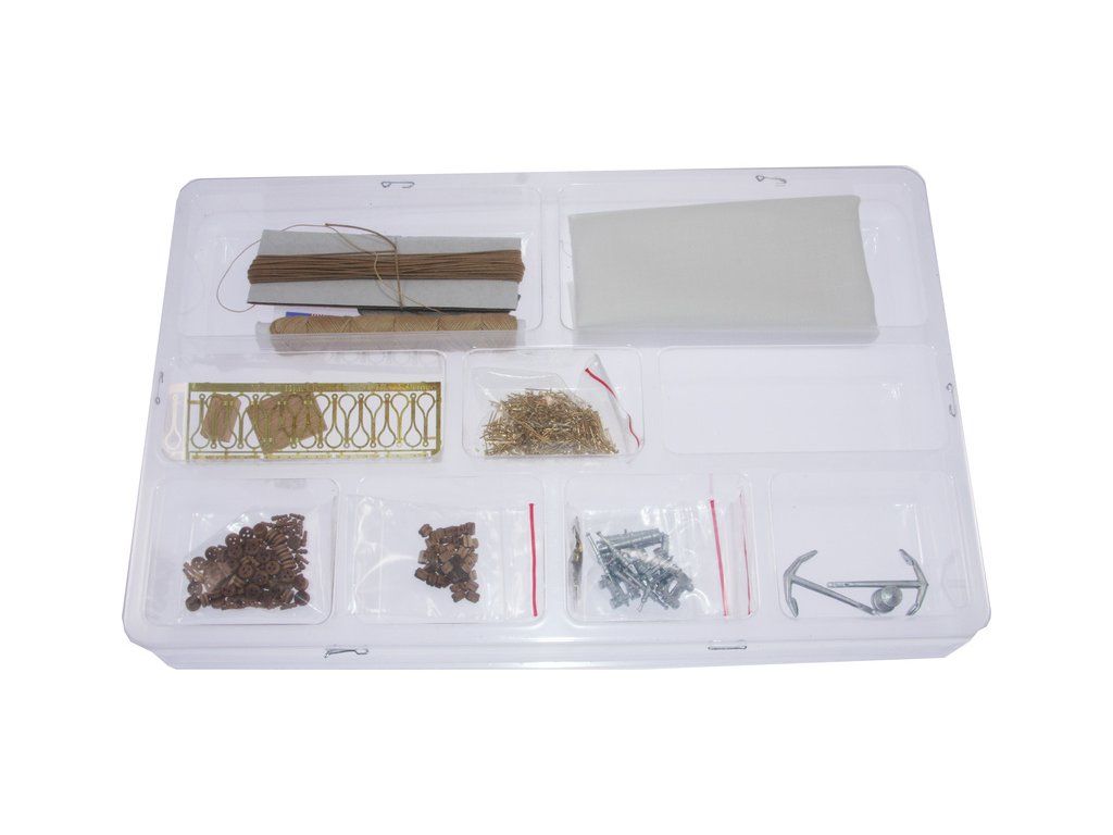 Balení obsahuje sadu překližkových dílů, sadu dřevěných lišt o různém průřezu, blistr s drobnými díly, sadu výkresů a manuál.