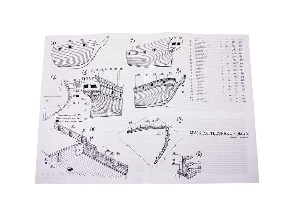 Stavebnice neplovoucího modelu MAMOLI Rattlesnake v měřítku 1:64 z roku 1779. Loď byla vyrobena v Plymouthu, Massachusetts a byla bohatě vybavena 14-20 kanony, posádka se skládala z 85 mužů. Loď byla rychlá, měla štíhlý trup se špičatou přídí. V balení jsou dřevěné díly, lišty a množství kování, lanoví, plány atd.