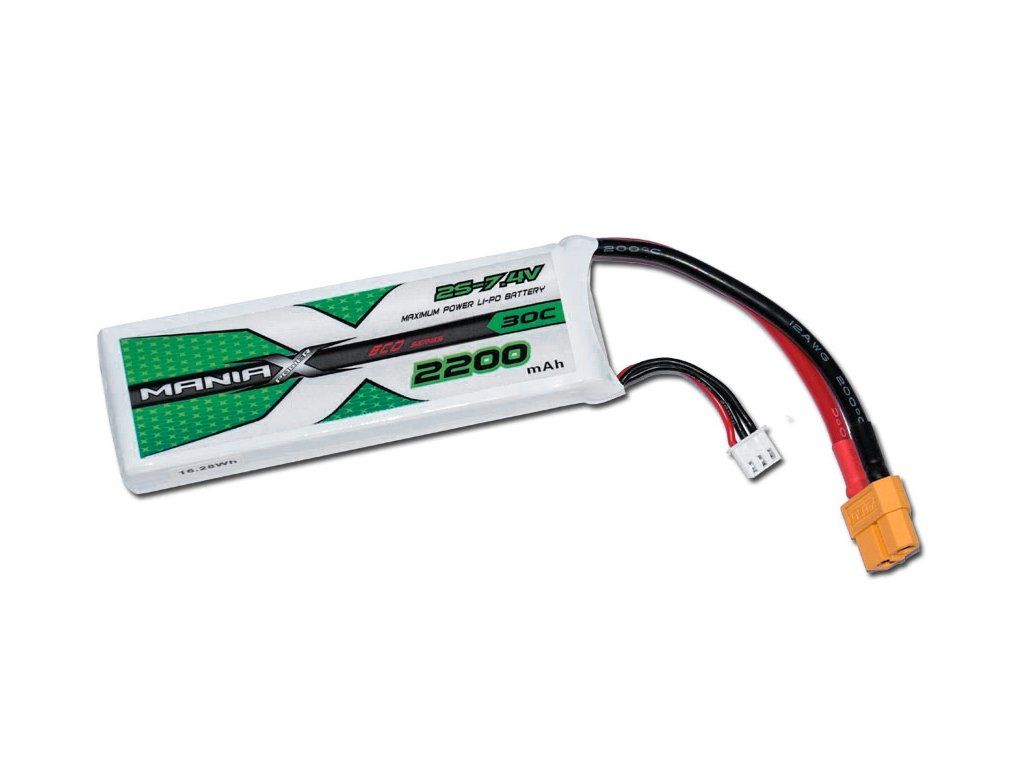 Lithiumpolymerové akumulátory ManiaX řady ECO 30/60C s proudovou zatížitelností max. 30C jsou určeny pro běžné aplikace v rekreačních i sportovních modelech letadel pro klasickou i 3D akrobacii. Vysoká proudová zatížitelnost zaručuje maximální využití výkonu motoru a dovoluje i poměrně razantní styl létání při zachování velmi dobré dlouhodobé životnosti.