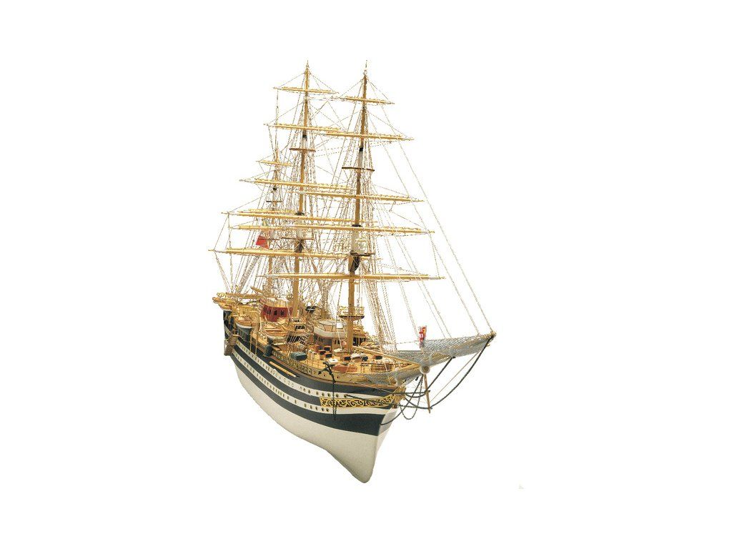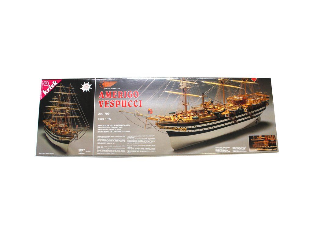 Stavebnice neplovoucího modelu lodi Amerigo Vespucci v měřítku 1:100, v detailním provedením a bohatým lanovím. Výcviková loď byla postavena v roce 1931 jako replika lodí z 18. století. Délka modelu 1 metr. Kit obsahuje dřevěné díly, dvojité plaňkování, kovové odlitky dekorací a podrobné stavení plány a anglickým popisem.