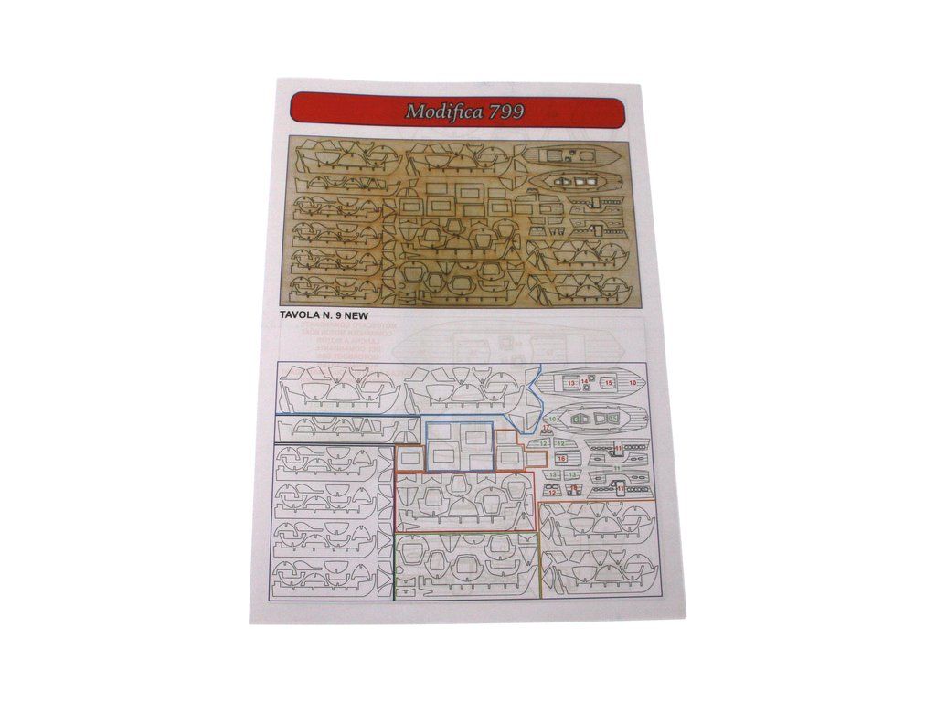 Balení obsahuje laserem řezané dřevěné díly, plaňky, paluby, stožáry, kovové a dřevěné kování, kovové odlitky a dekorace vyleptané z mosazi. Podrobný stavební plán s anglickým popisem se skládá z 9 listů.