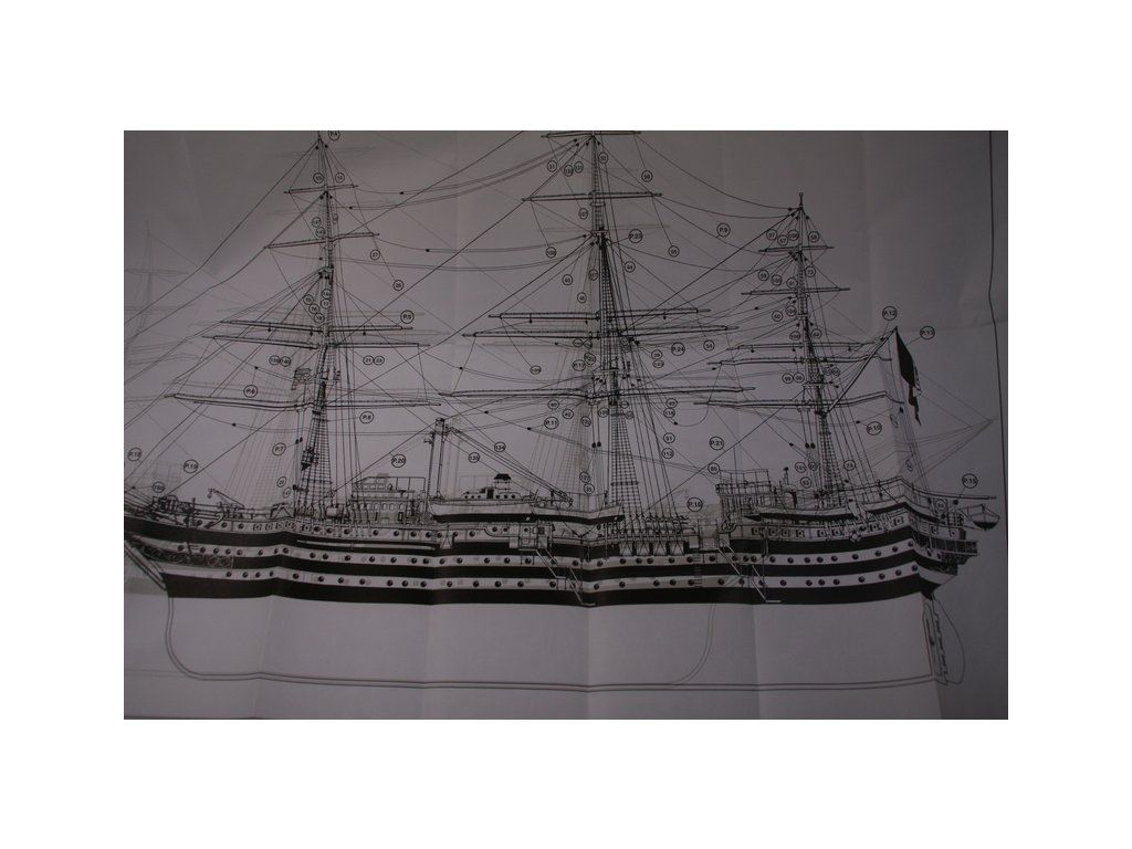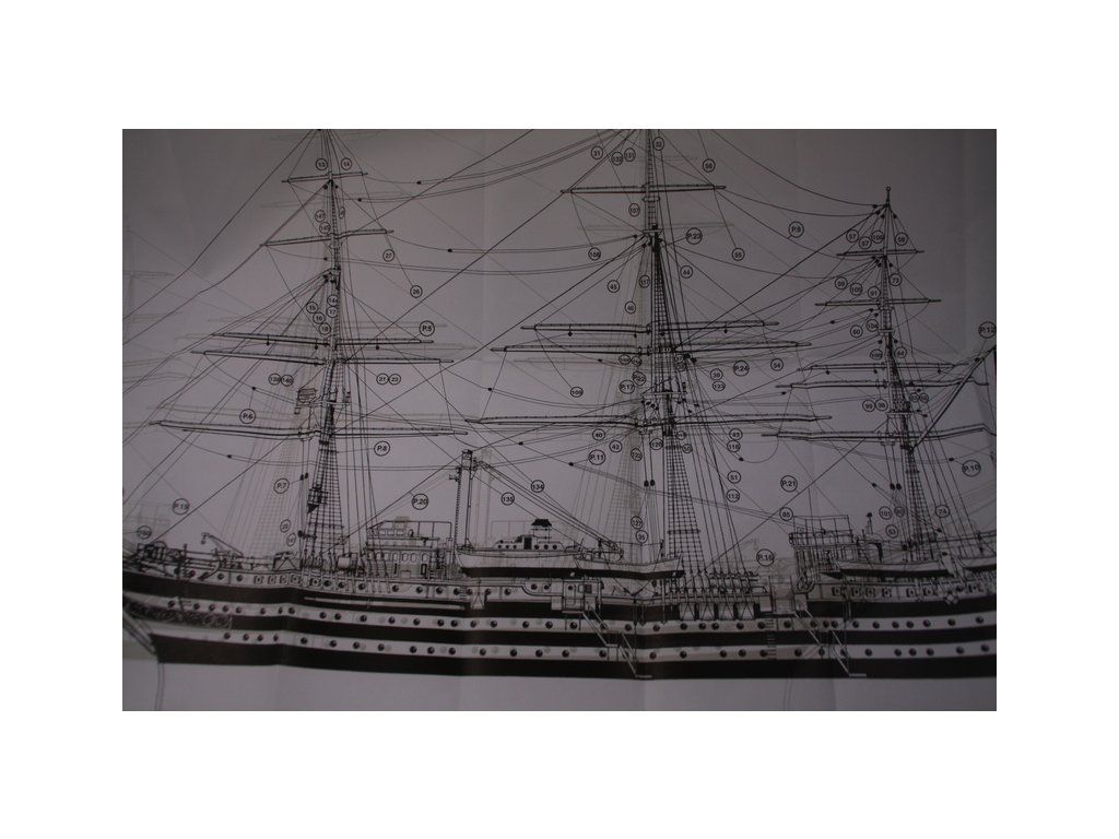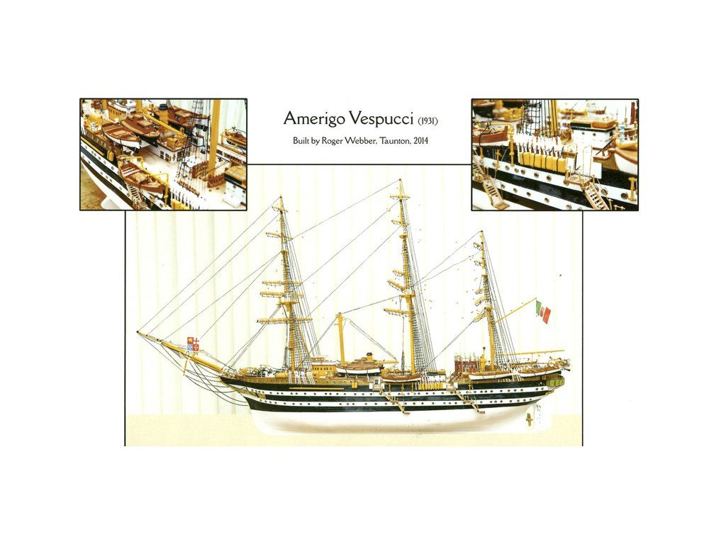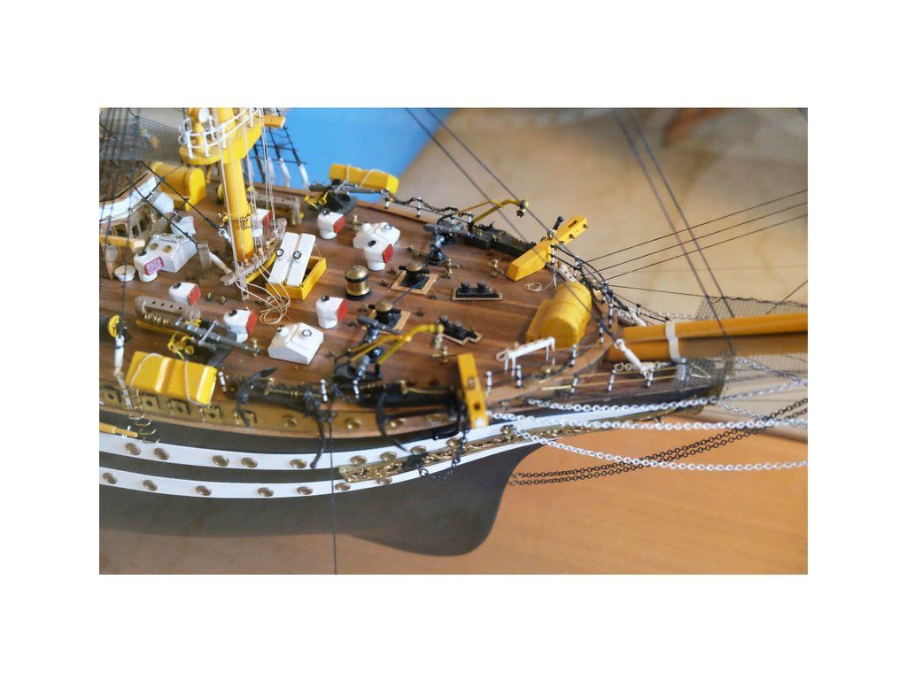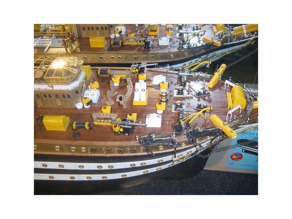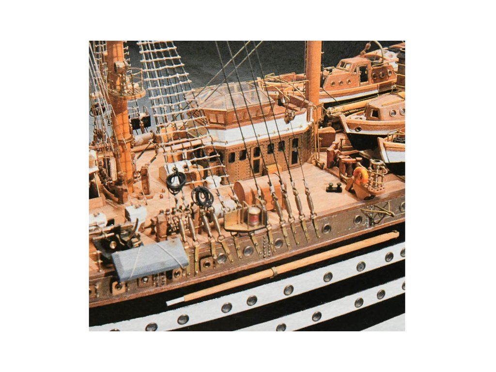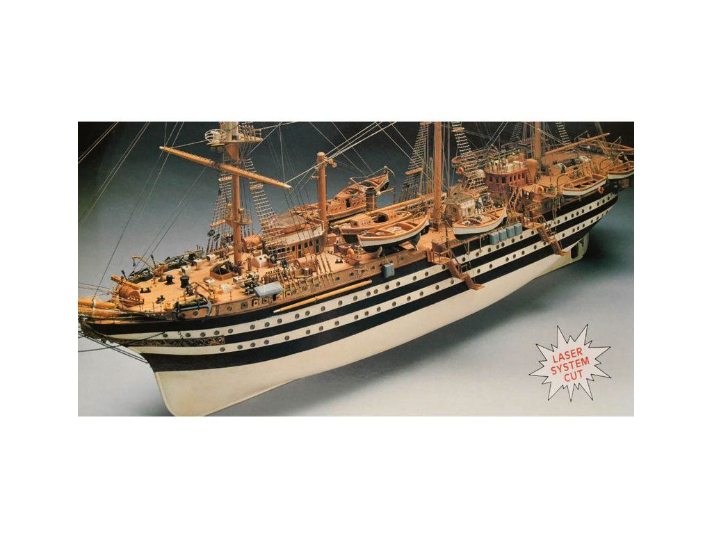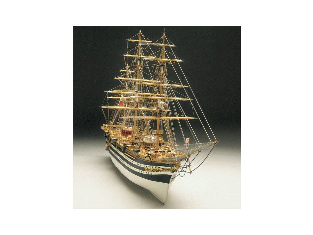 Stavebnice neplovoucího modelu lodi Mantua Model Amerigo Vespucci v měřítku 1:84 a délce 1250mm. Výcviková loď byla postavena v roce 1931 jako replika lodí z 18. století. Kit obsahuje dřevěné díly, kovové odlitky dekorací a podrobné stavení plány.