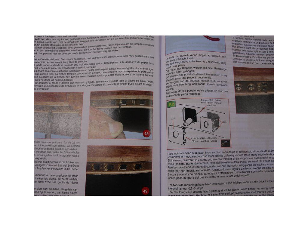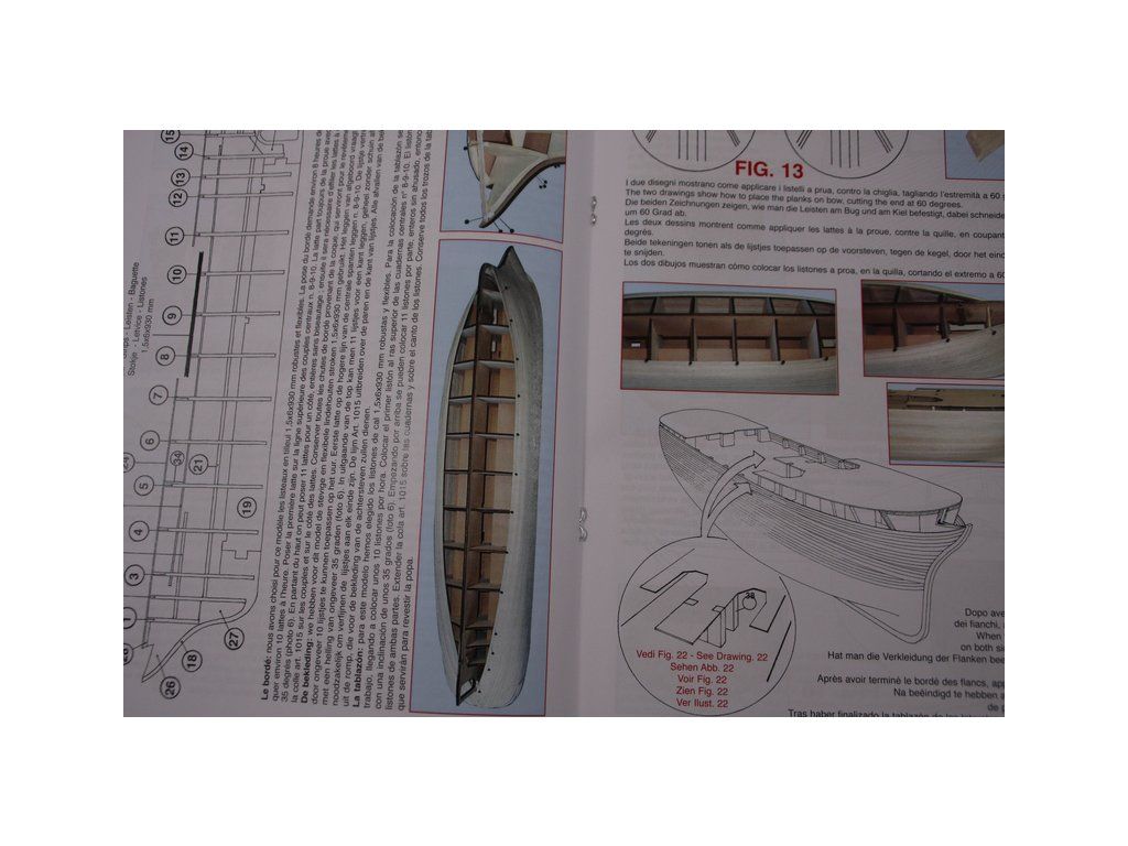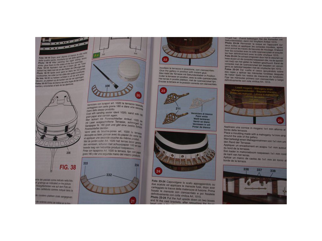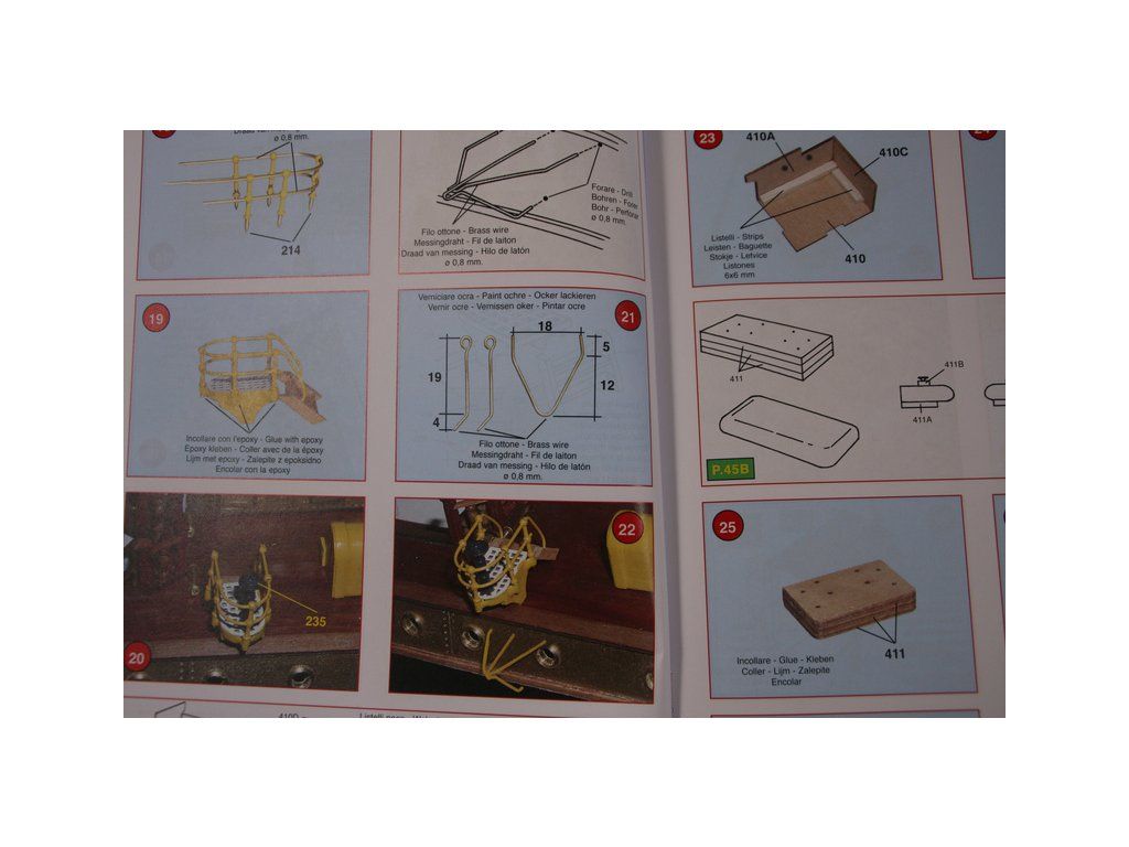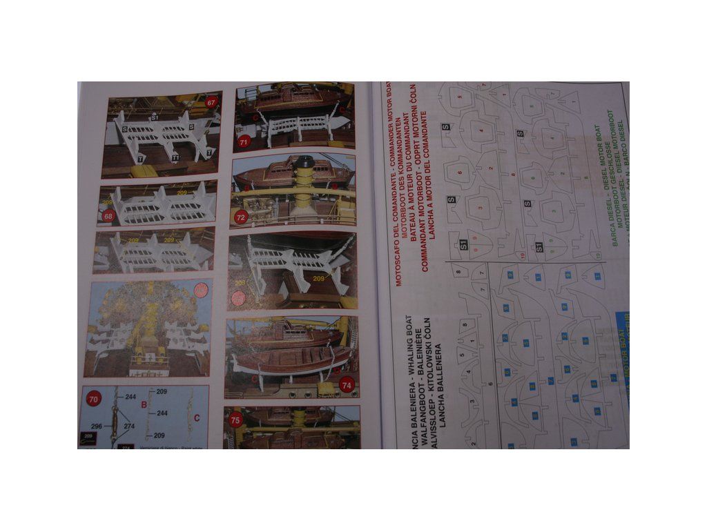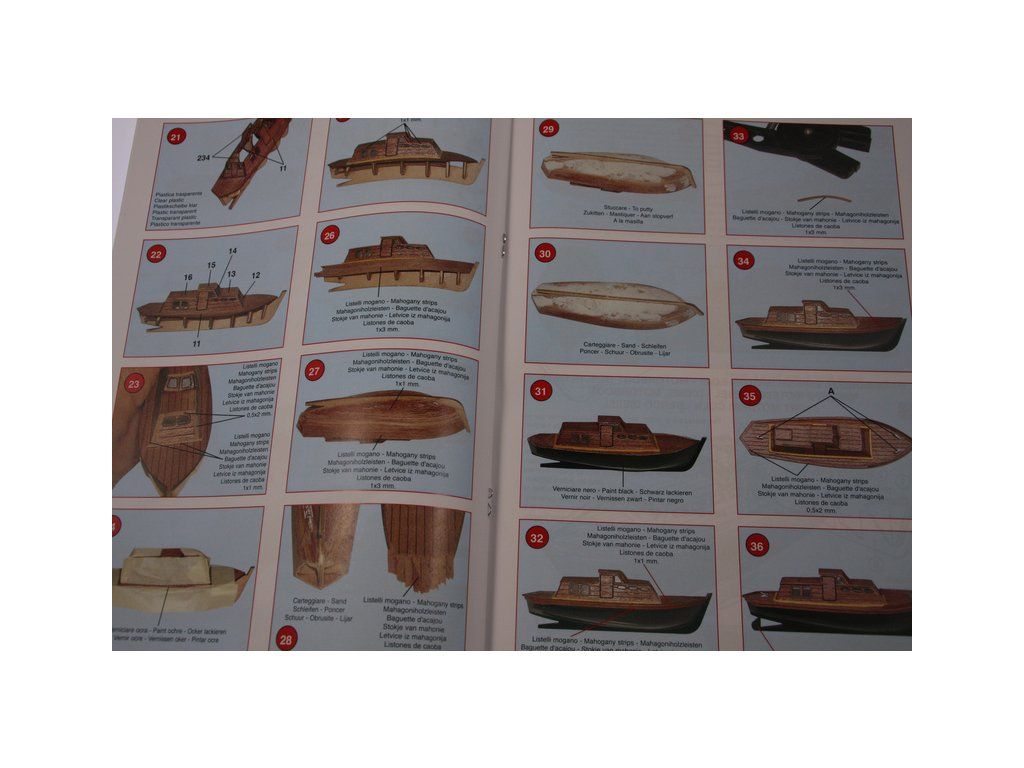 Balení obsahuje laserem řezané dřevěné díly, plaňky, paluby, stožáry, kovové a dřevěné kování, kovové odlitky a dekorace vyleptané z mosazi. Stavební plány, podrobný obrázkový vícejazyčný návod.
