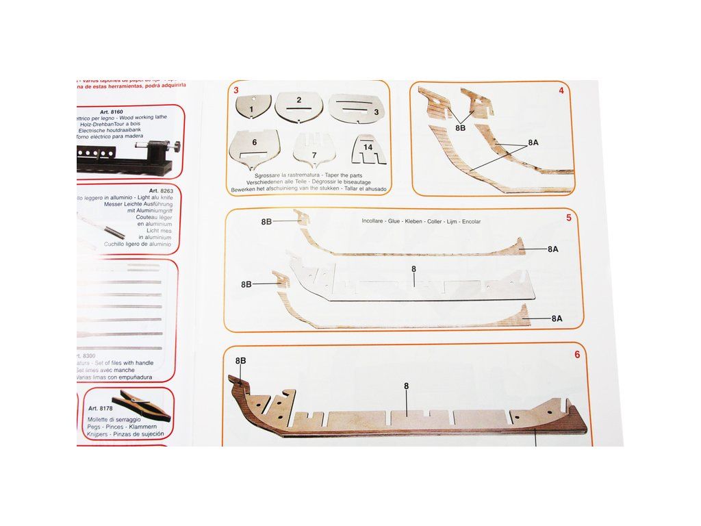 Ke stavbě modelů lodí je nutné vhodné nářadí. Doporučujeme výbornou sadu Modelcraft nářadí pro lodní modeláře (sada 12ks), nebo Modelcraft nářadí pro modeláře (sada 18ks). Dále doporučujeme koupi nylonových svorek a nepostradatelné modelářské špendlíky. Pro úpravu, přesné řezaní, lepení dílů a také jako ochranu stolu doporučujeme modelářskou podložku.