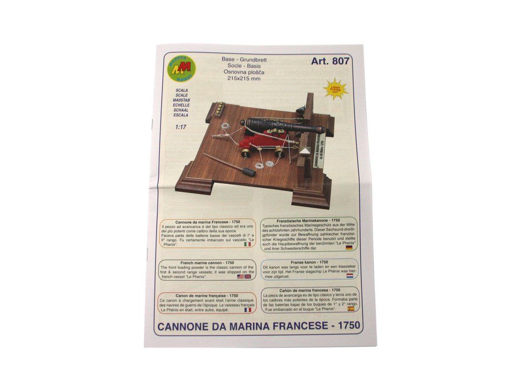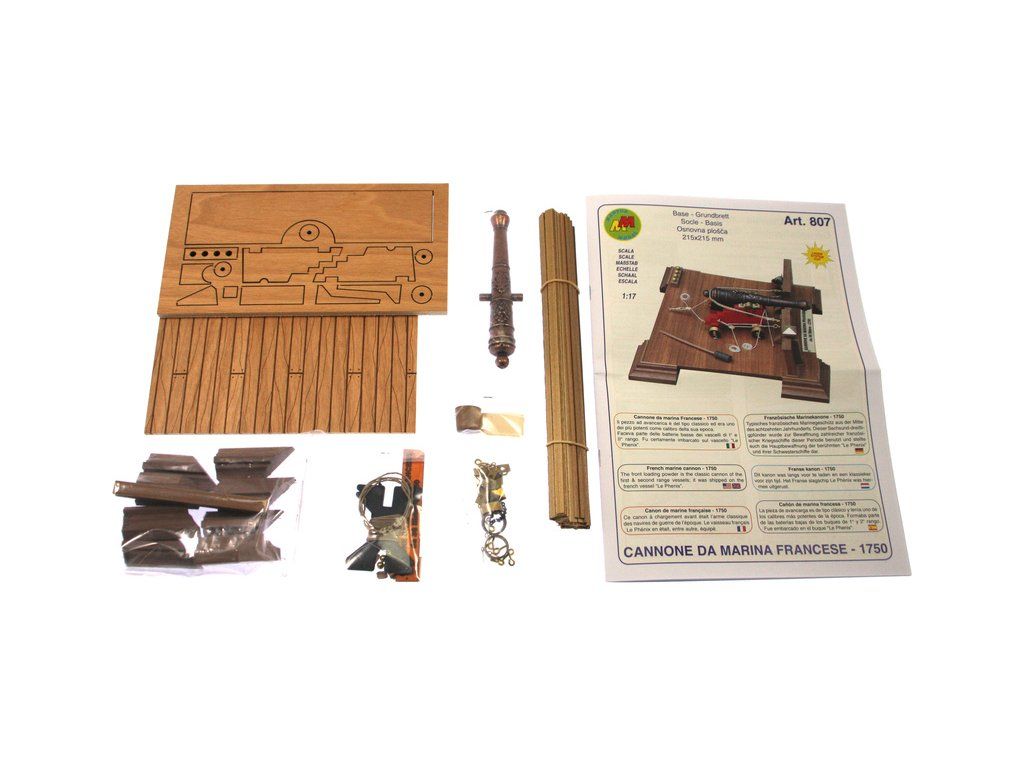 Stavebnice modelu Francouzského kanónu v měřítku 1:17. Jedeno z nejsilnějších děl z poloviny 18. století bylo součástí většin francouzských válečných lodí. Tímto typem děla byla vybavena také slavná loď La Phenix. Konstrukce se skládá z předem nařezaných dřevěných dílů a kovových litých ozdob.