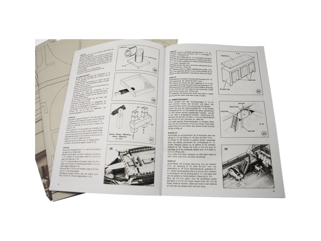 Balení obsahuje sadu překližkových dílů, sadu dřevěných lišt o různém průřezu, blistr s drobnými díly, díly z mosazi, sadu výkresů a vícejazyčný manuál.