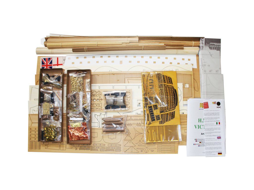 Stavebnice velké neplovoucí makety Mantua Model HMS Victory Panart v měřítku 1:78 a délce 1,3m. Skvělý model vlajkové lodi admirála Lorda Nelsona z bitvy u Trafalgaru. obsáhlá stavebnice obsahuje dřevěné díly vyřezané laserem, spoustu maketových detailů, mosazných leptů a kovových odlitků, stavební plány a návod s výkresy řezů.