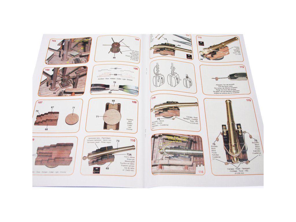 Balení obsahuje sadu překližkových dílů, sadu dřevěných lišt o různém průřezu, drobné díly v blistru, sadu výkresů a vícejazyčný manuál.
