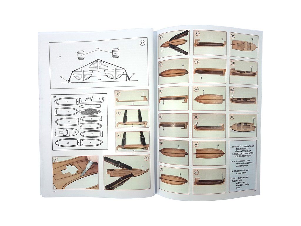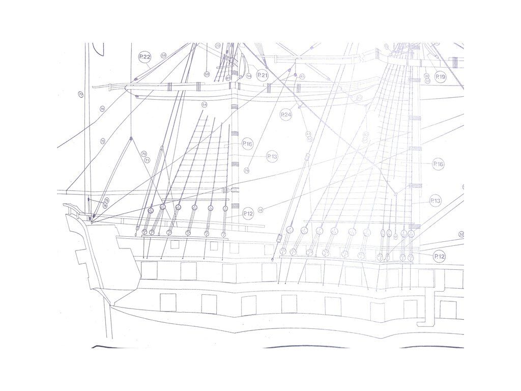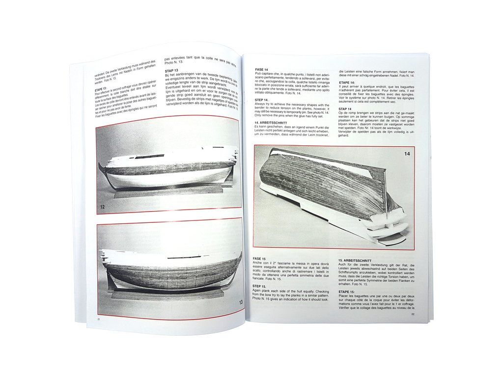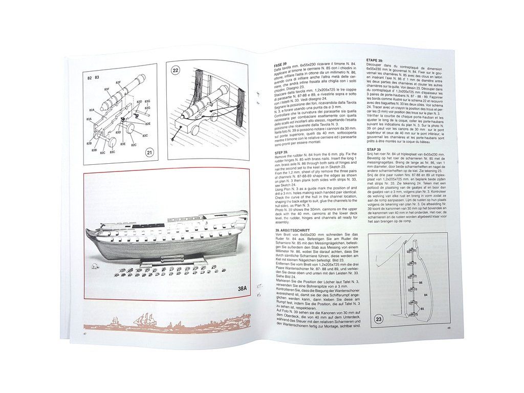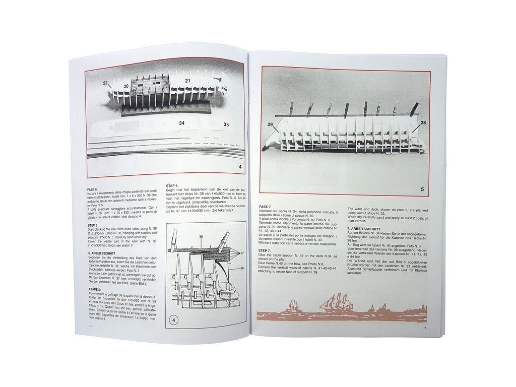 Balení obsahuje laserem řezané dřevěné díly, plaňky, paluby, stožáry, kovové a dřevěné kování, kovové odlitky a dekorace vyleptané z mosazi. Díly na výrobu stojánku. Podrobný vícejazyčný manuál a stavební plány.