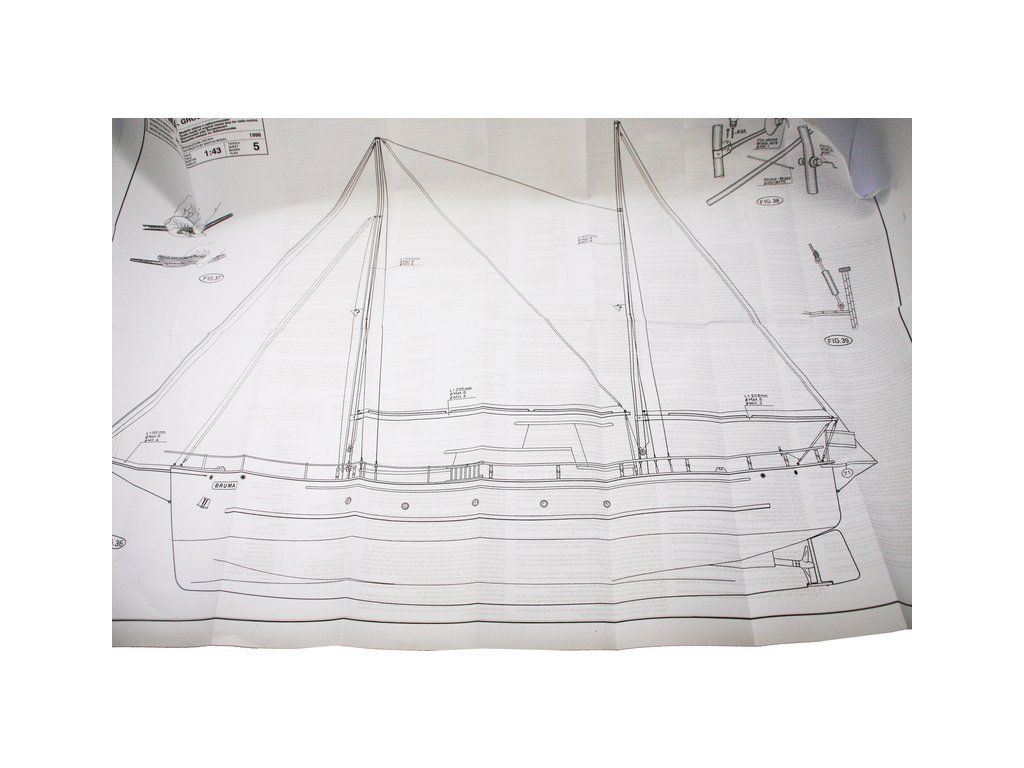 Stavebnice modelu lodi Mantua Motorová jachta Bruma v měřítku 1:43 a délce 860mm. Dřevěný model s klasickou stavbou můžete mít jako statickou maketu nebo funkční, poháněnou volitelným elektromotorem. Obrazový návod krok za krokem, sada dřevěných a kovových dílů.