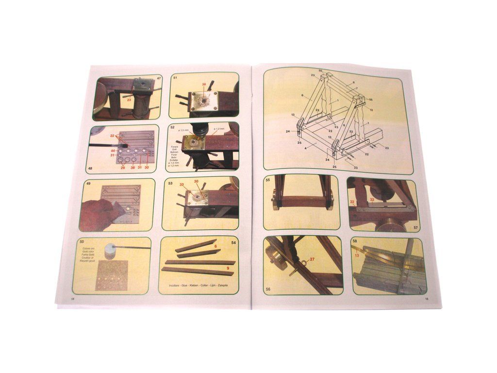 Stavebnice modelu Římského katapultu v měřítku 1:12. Konstrukce se skládá z předem nařezaných dřevěných dílů a kovových litých ozdob. Předloha katapultu pochází z 1. století našeho letopočtu. Originál katapultu je umístěn v muzeu v Římě.