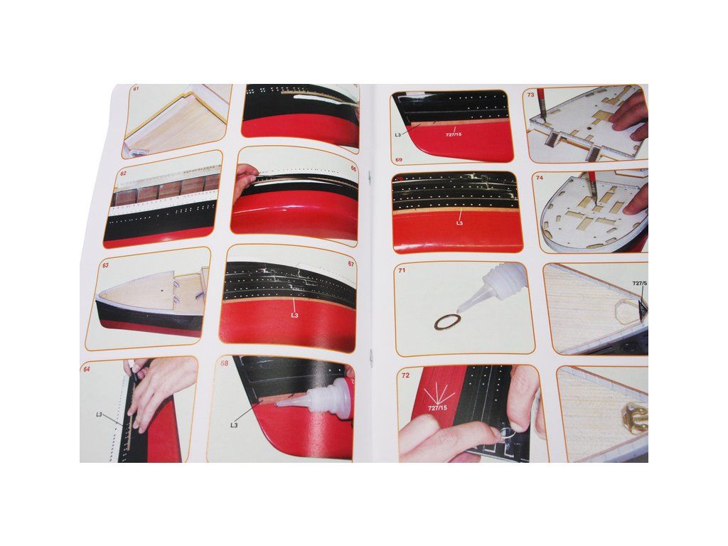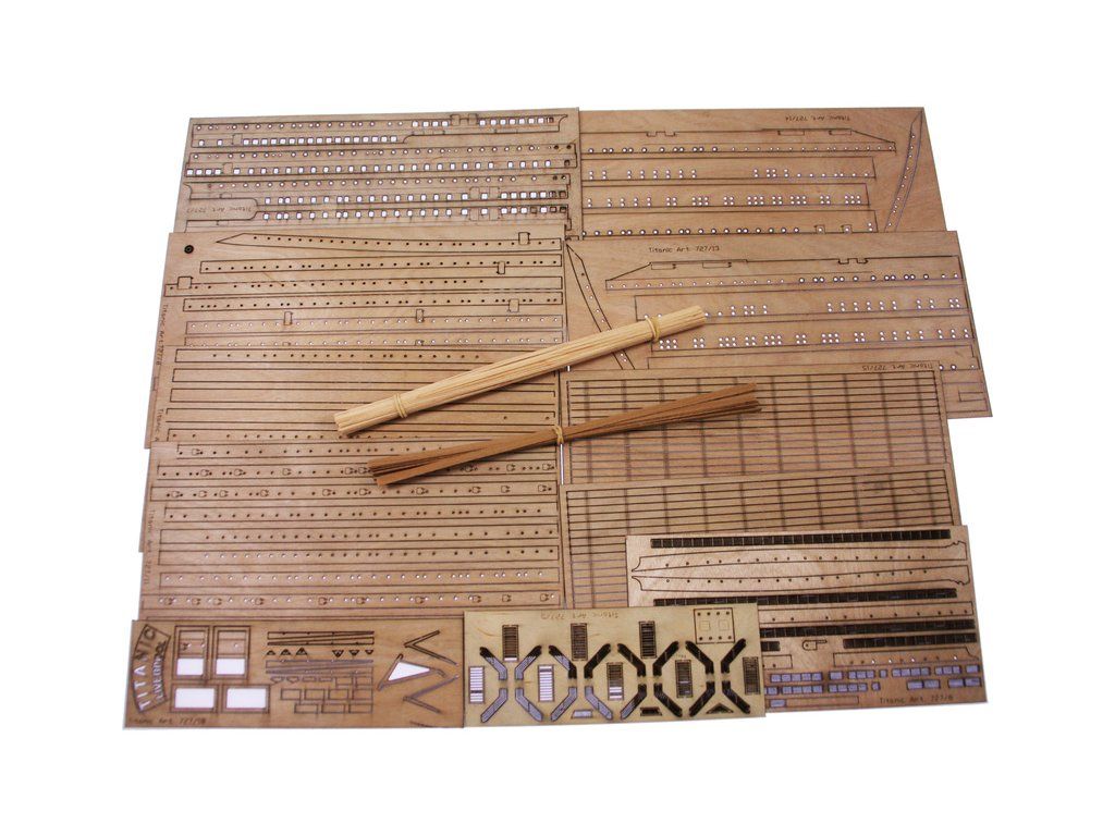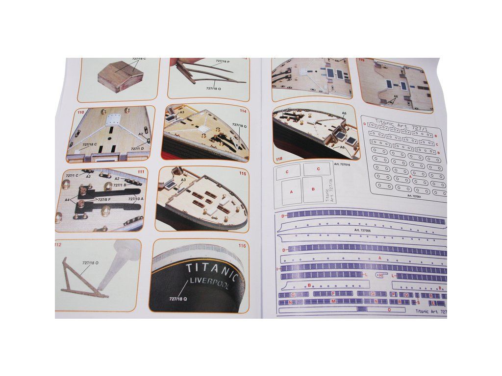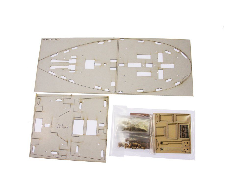 Mantua Model Titanic 1:200 sada č.3 kit v měřítku 1: 200 a délce 1350mm. Titanic je vlajkovou lodí řady Mantua Model, který se sestaví z 5 setů. Sada č.3 obsahuje boční panely oken trupu, přídě a zádi, detaily a kování. Součástí je anglický návod a foto detaily.