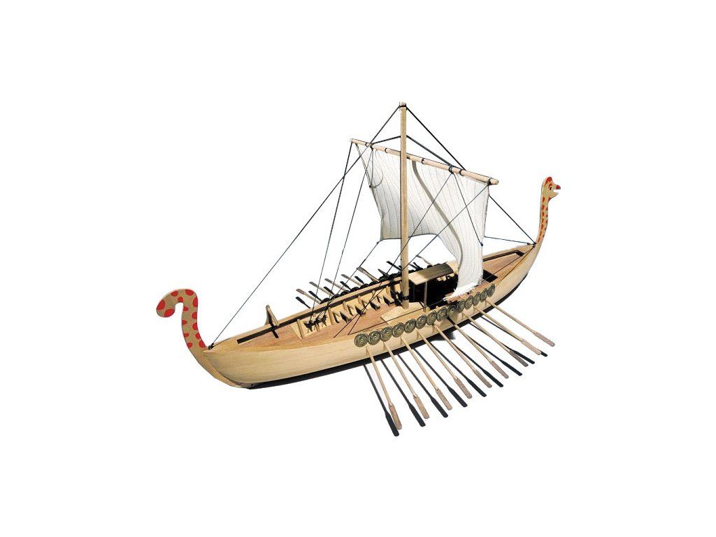 Stavebnice neplovoucího modelu Vikingské lodi v měřítku 1:40. Pěkný začátečnický model s délkou 51cm. Kit obsahuje dřevěné díly, stěžeň, ráhno, dekorace z ražené mosazi, plachtovina a ozdobné díly. Stavební plán.