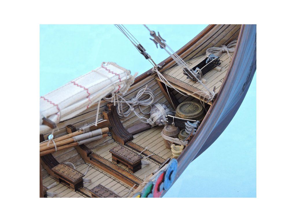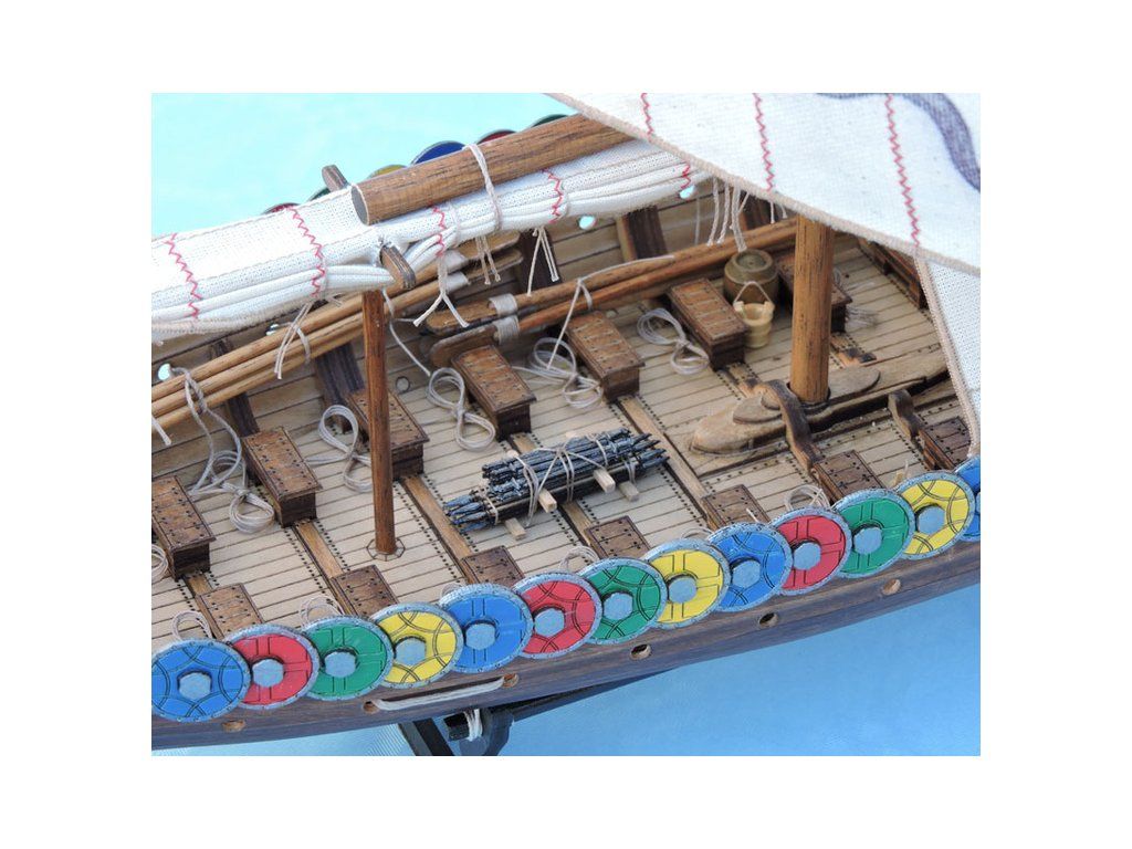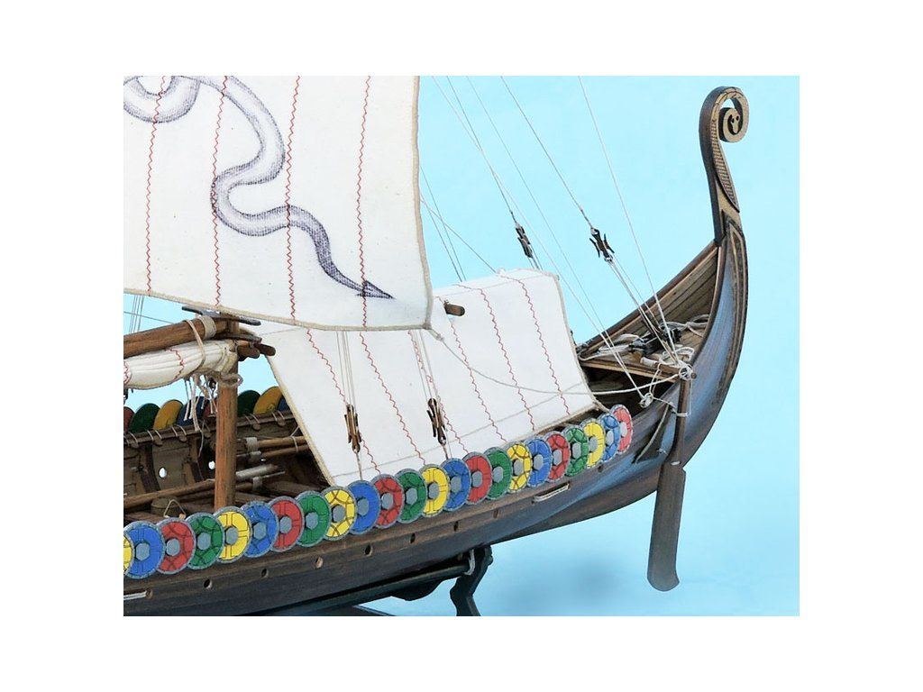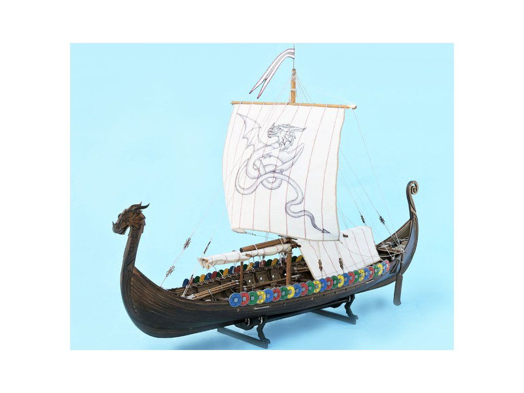 Stavebnice modelu Vikingské lodi Dreki v měřítku 1:40 od Mantua Model. Délka modelu lodi je 600 mm, stavba je převážně ze dřeva, s řadou doplňků. Součástí je stavební plán a manuál s mnoha podrobnými obrázky.