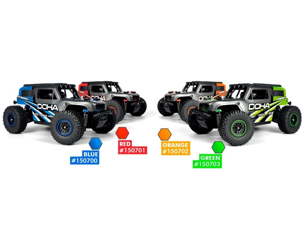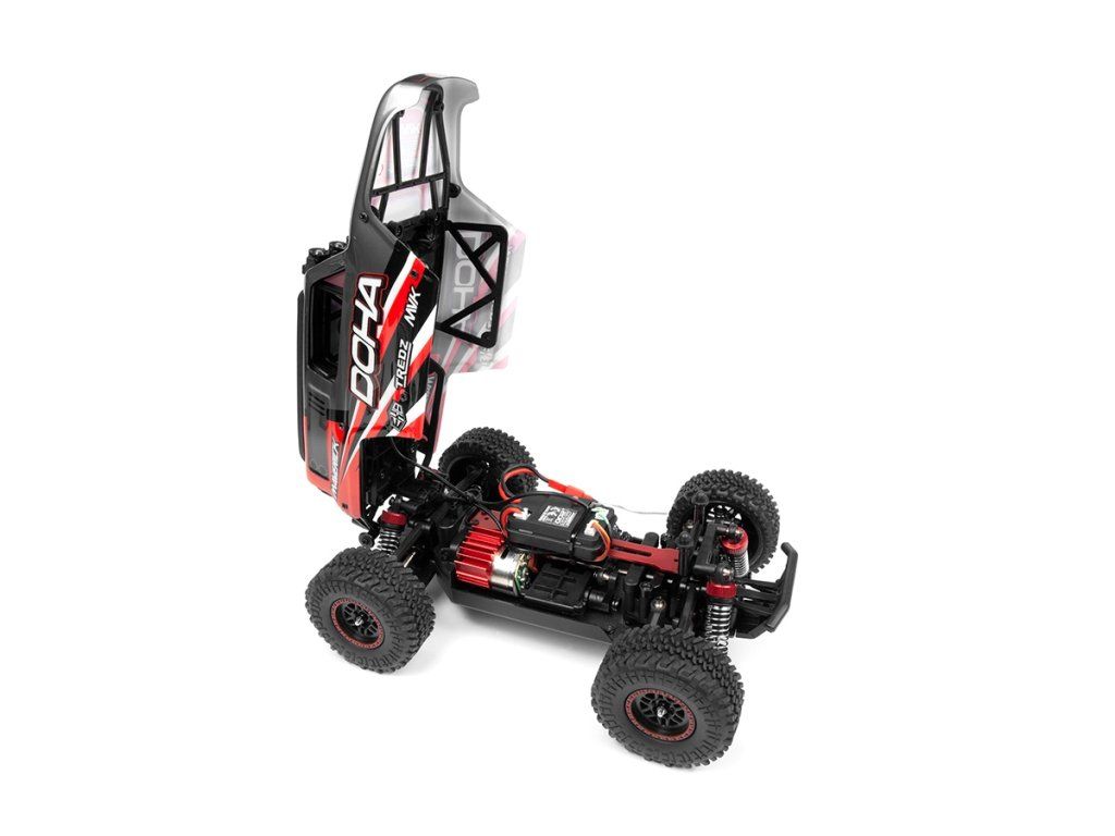 DOHA má odolný hřídelový pohon a planetové diferenciály, které zajišťují optimální rozdělení výkonu pro výjimečnou stabilitu a přesné řízení v různých terénech. Jeho zesílená konstrukce spolu s originální potištěnou výklopnou karoserií Desert truck nejen zvyšuje jeho vizuální přitažlivost, ale také umožňuje snadný přístup k pohonnému akumulátoru. Model DOHA je k dispozici ve čtyřech výrazných barevných variantách.