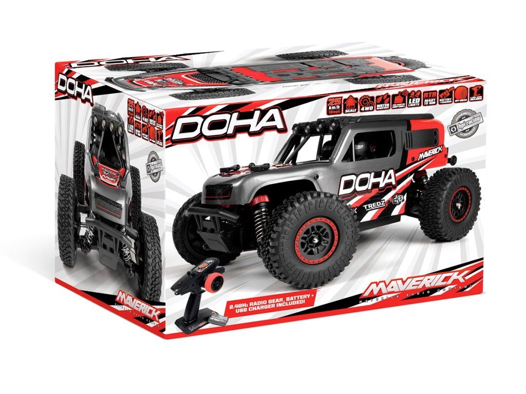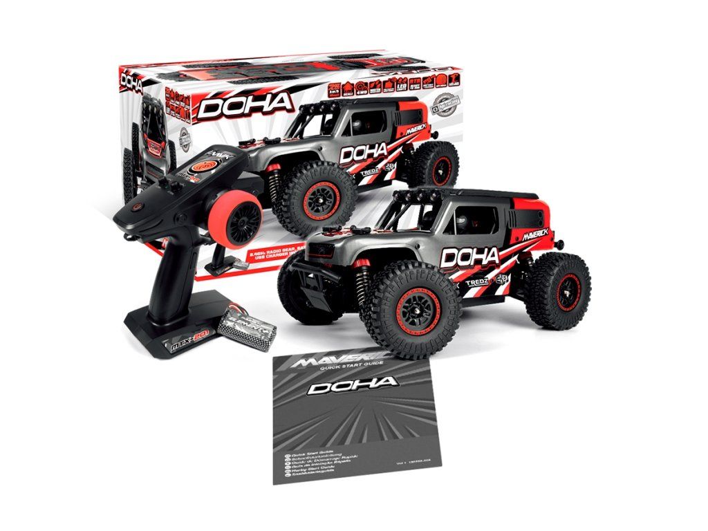 Součástí balení modelu DOHA je 600mAh li-ion akumulátor Maverick Element, praktický USB nabíječ, 2,4GHz rádiový systém MTX-201, voděodolný 2v1 přijímač/regulátor MSRS-201. Model DOHA je navíc vybaven střešními LED světly, která umožňují provoz za zhoršených světelných podmínek.