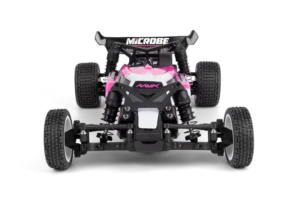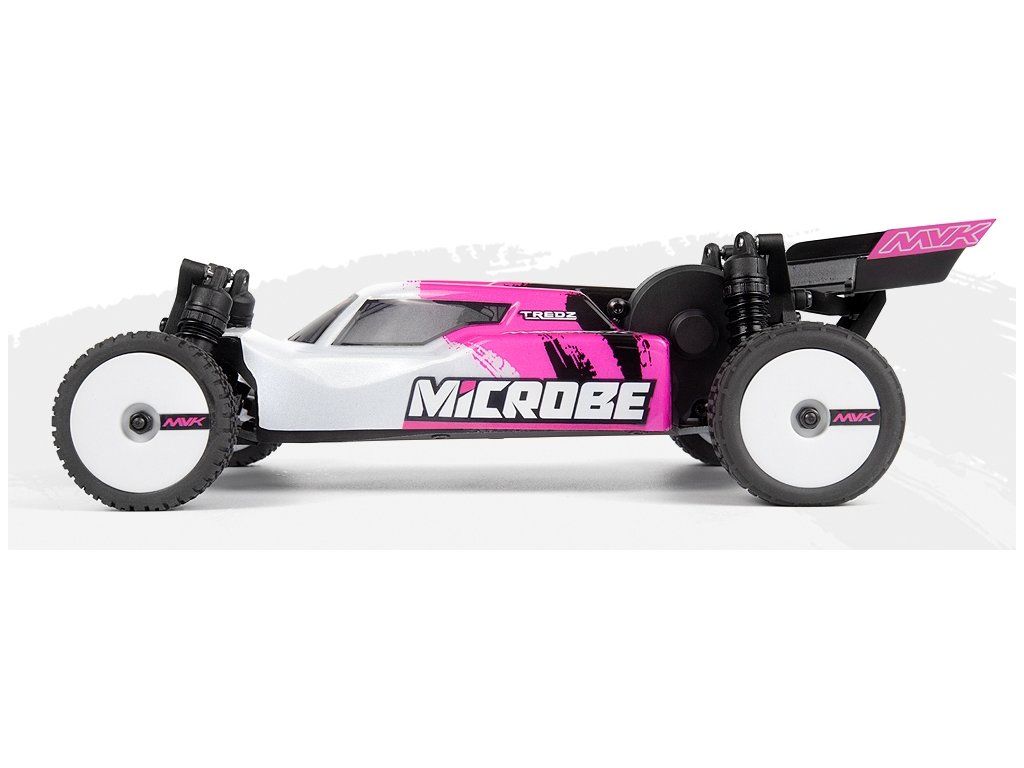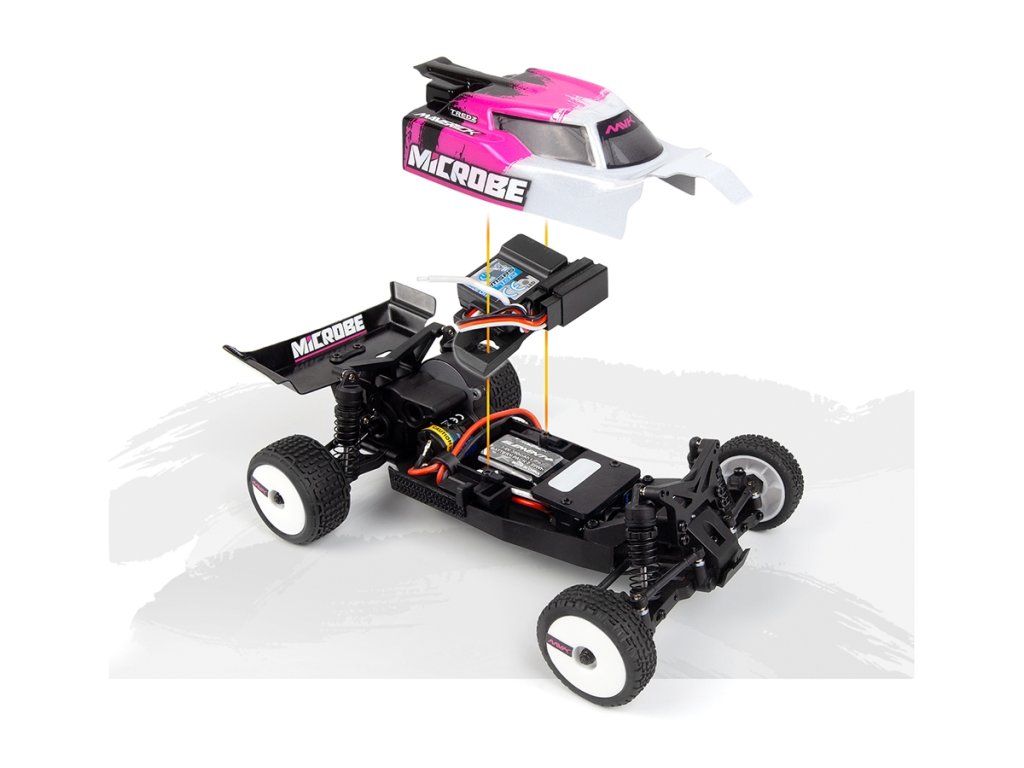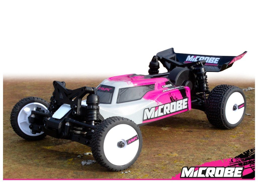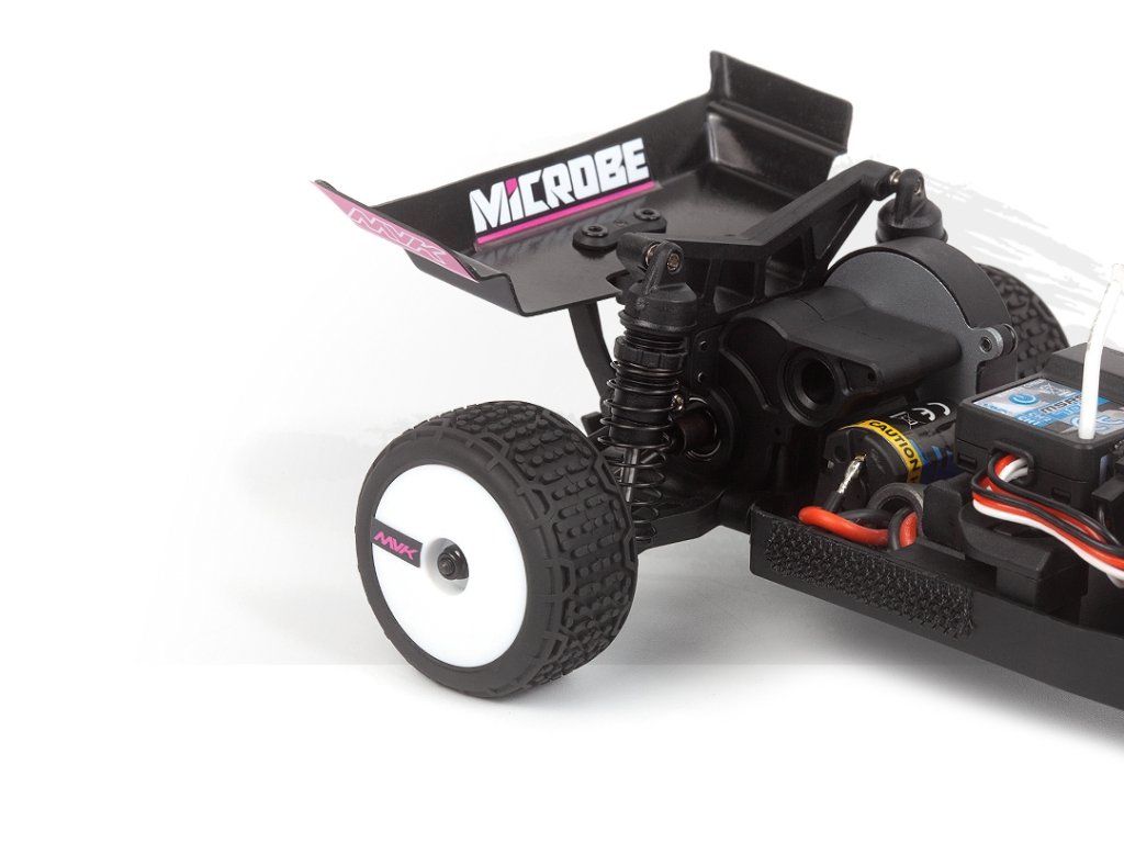 Elegantní 1,5 mm eloxované hliníkové plato podvozku, osazení kuličkovými ložisky a plynulá 3kolová zadní převodovka společně dodávají modelu Microbe stabilní a přesný pocit z jízdy. Přidejte olejové tlumiče a odvětrávaná kola s pěnovými vložkami a získáte malou buggy, která miluje zatáčky, pohlcuje nerovnosti a s jistotou vystřeluje ze zatáček.