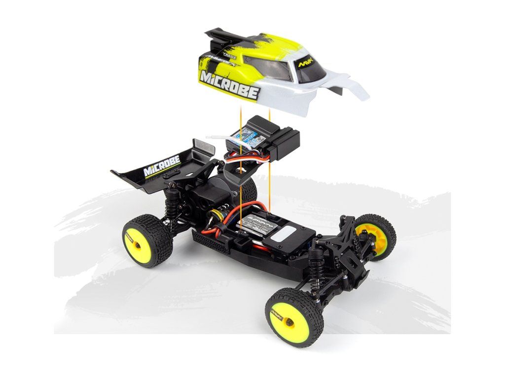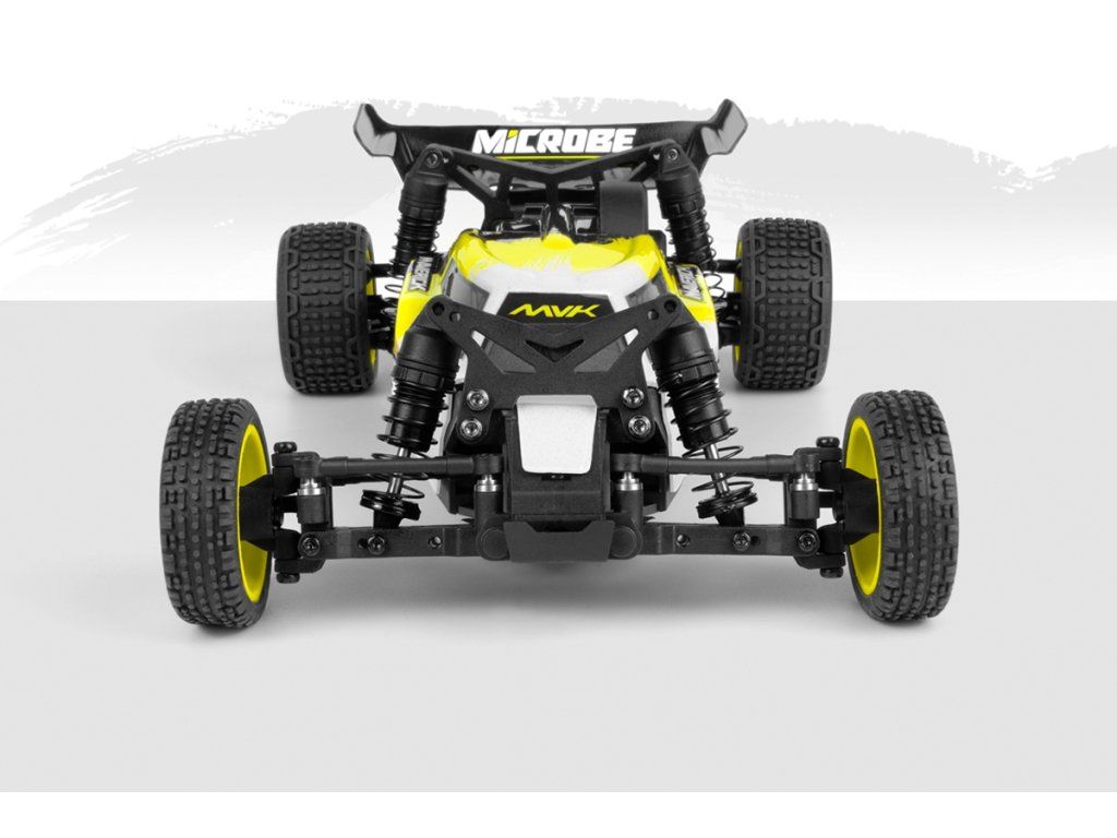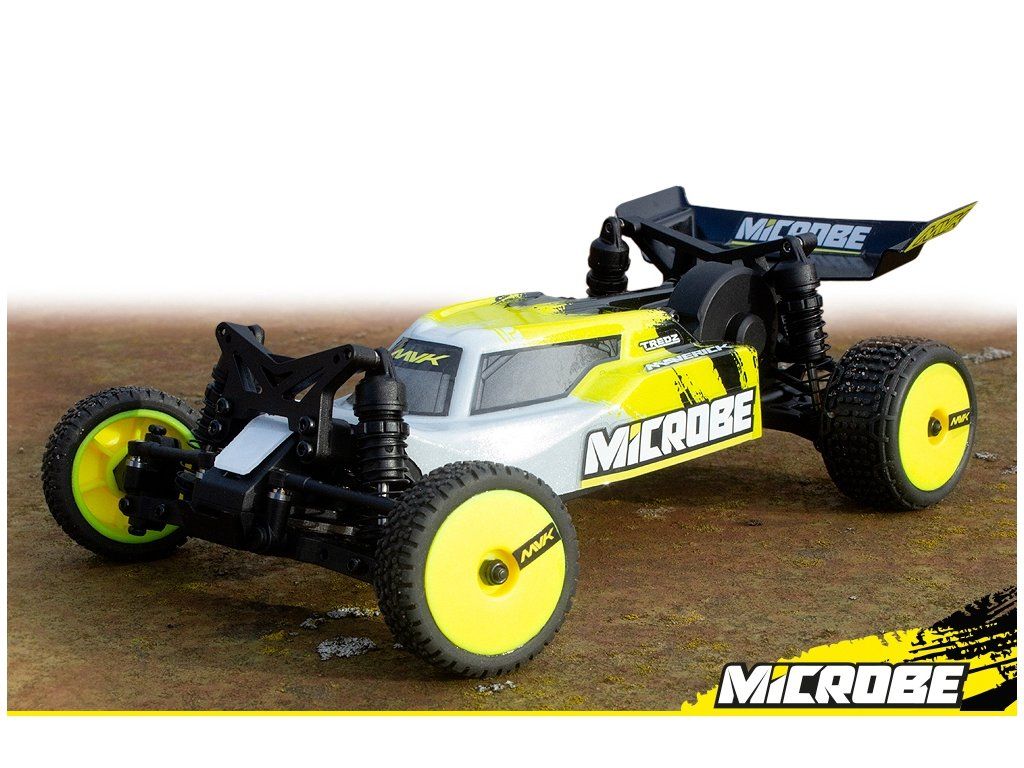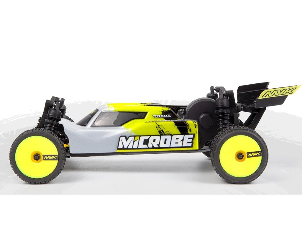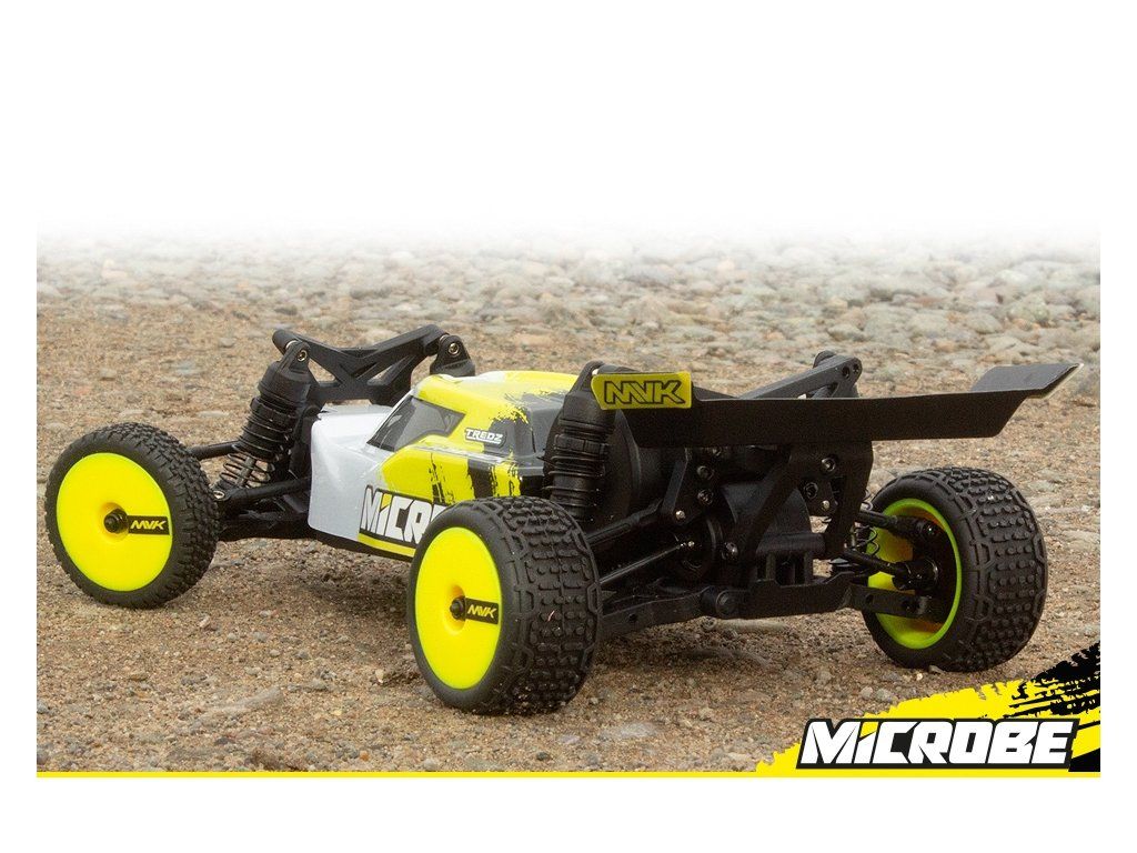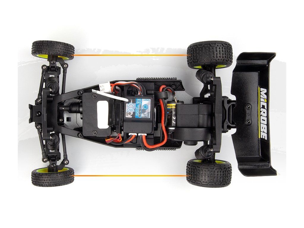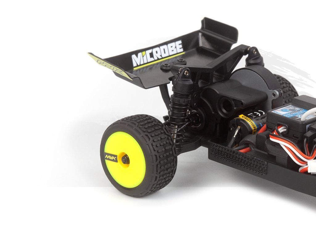 Elegantní 1,5 mm eloxované hliníkové plato podvozku, osazení kuličkovými ložisky a plynulá 3kolová zadní převodovka společně dodávají modelu Microbe stabilní a přesný pocit z jízdy. Přidejte olejové tlumiče a odvětrávaná kola s pěnovými vložkami a získáte malou buggy, která miluje zatáčky, pohlcuje nerovnosti a s jistotou vystřeluje ze zatáček.