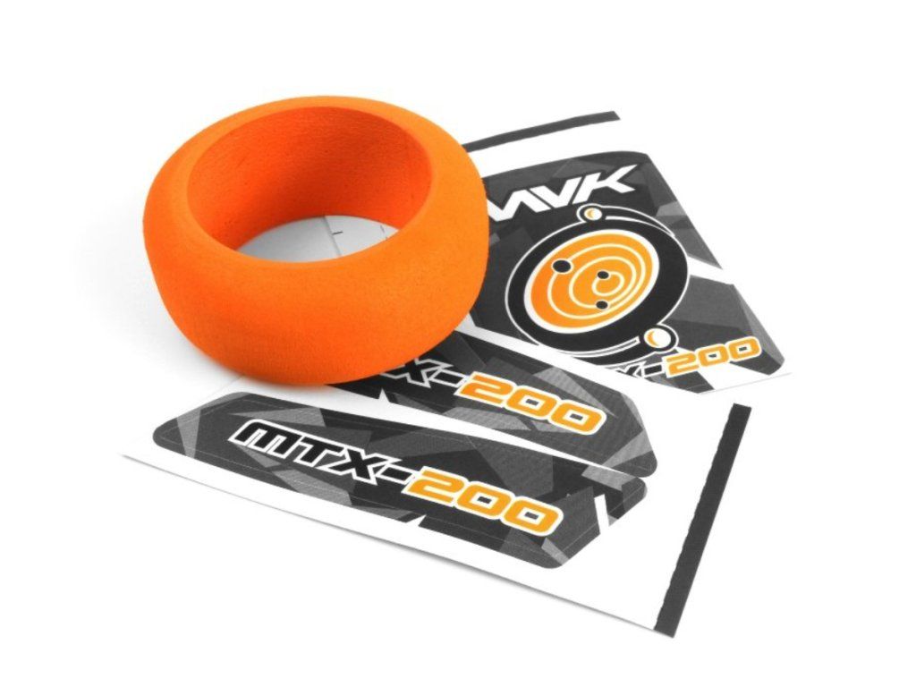 Mechový kroužek volantu vysílače a oranžové samolepky (Atom)