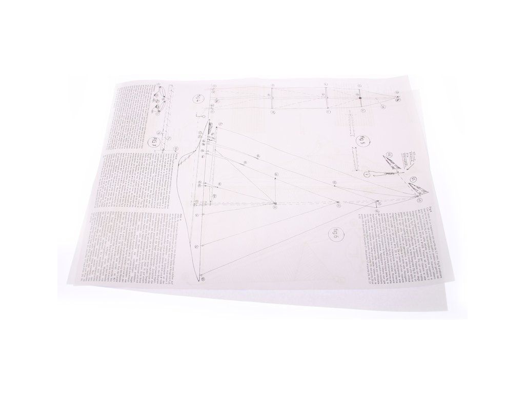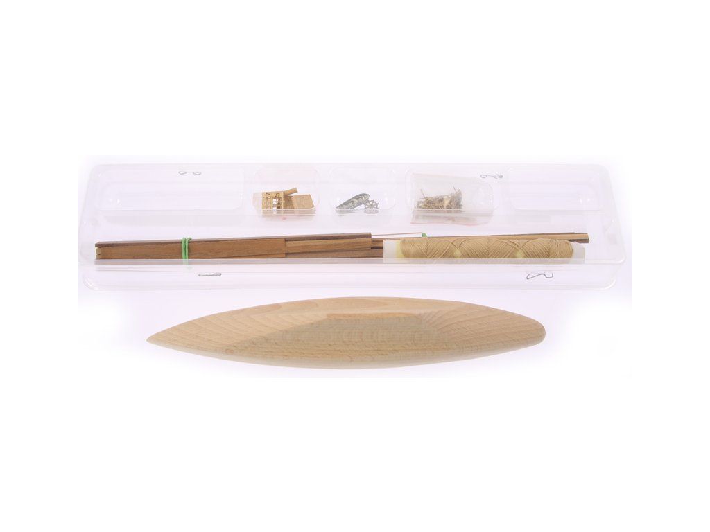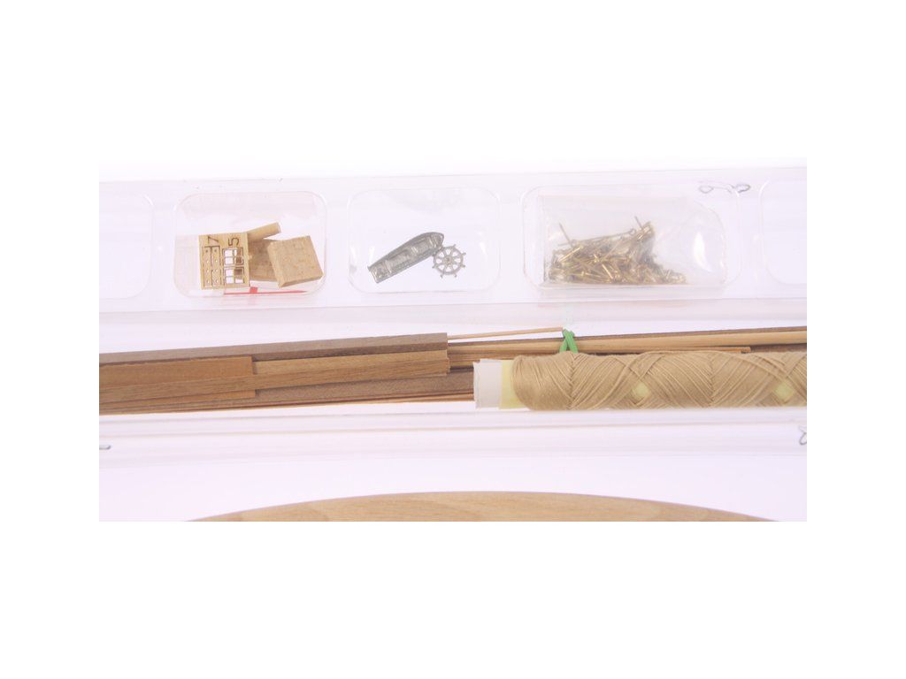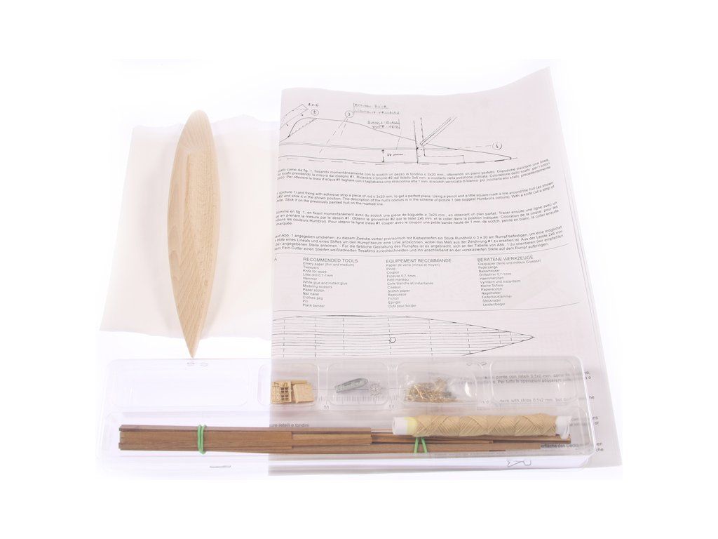 Balení obsahuje hotový polotovar trupu, překližkové díly, dřevěné lišty, blistr s drobnými díly, sadu výkresů a návod anglický, německý, francouzský a italský.