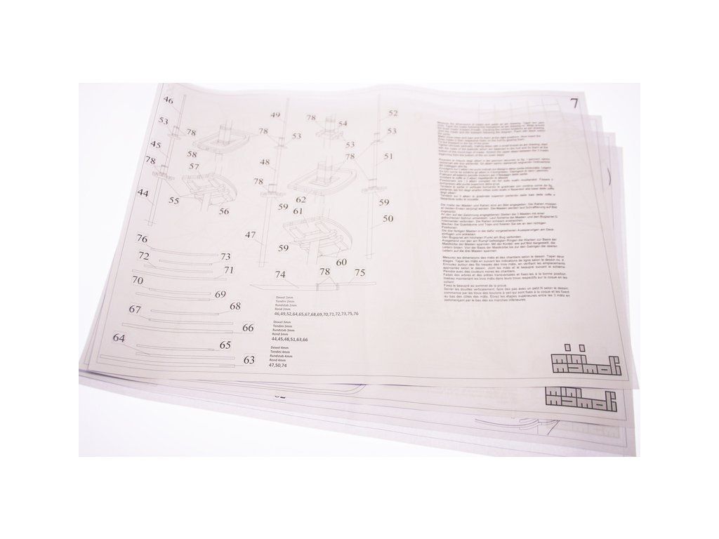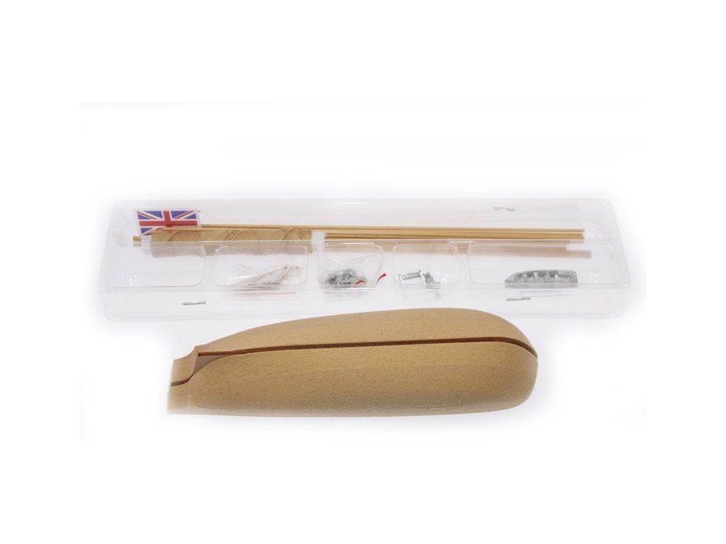 Balení obsahuje hotový polotovar trupu, překližkové díly, dřevěné lišty, blistr s drobnými díly, sadu výkresů a český návod.