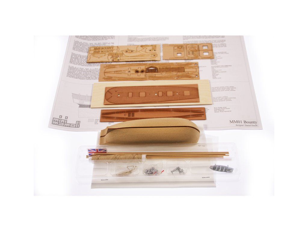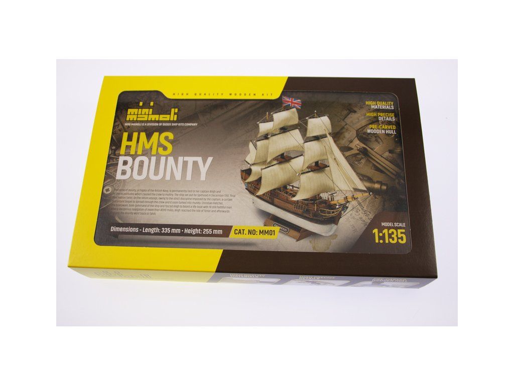 Model lodi H.M.S Bounty, z řady Mini Mamoli, v měřítku 1:135. Model vhodný pro začínající modeláře. Stavebnice obsahuje vyřezané dřevění díly, kovové díly, stojánek, plány a český návod.