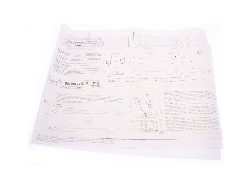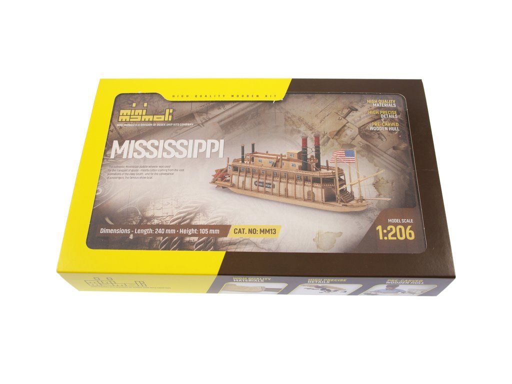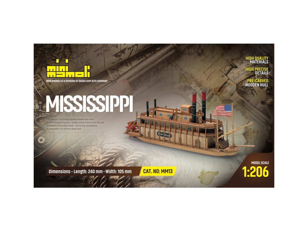 Model lodi H.M.S. Mississippi, z řady Mini Mamoli, v měřítku 1:206. Typický americký lopatkový parník hojně používaný v letech 1870 až 1920. Díky nízkému ponoru mohly tyto lodě plout i v mělkých řekách. Stavebnice obsahuje vyřezané dřevění díly, kovové díly, stojánek a návod.