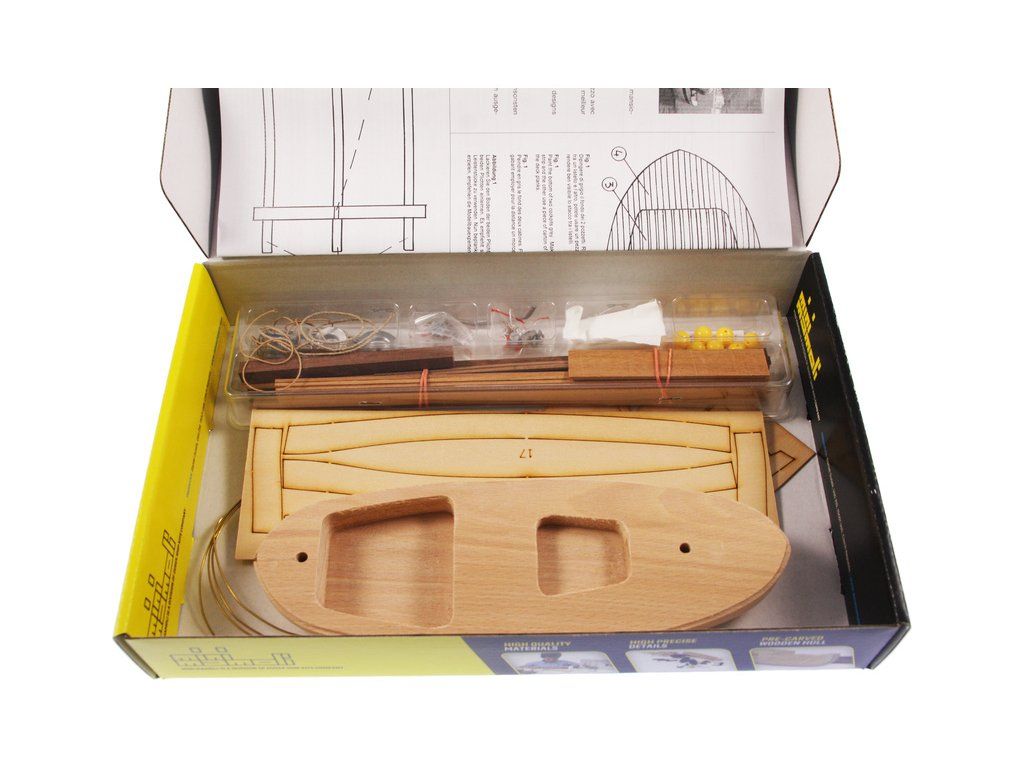 Balení obsahuje sadu překližkových dílů, sadu dřevěných lišt o různém průřezu, blistr s drobnými díly, sadu výkresů a manuál anglický, německý, francouzský a italský.