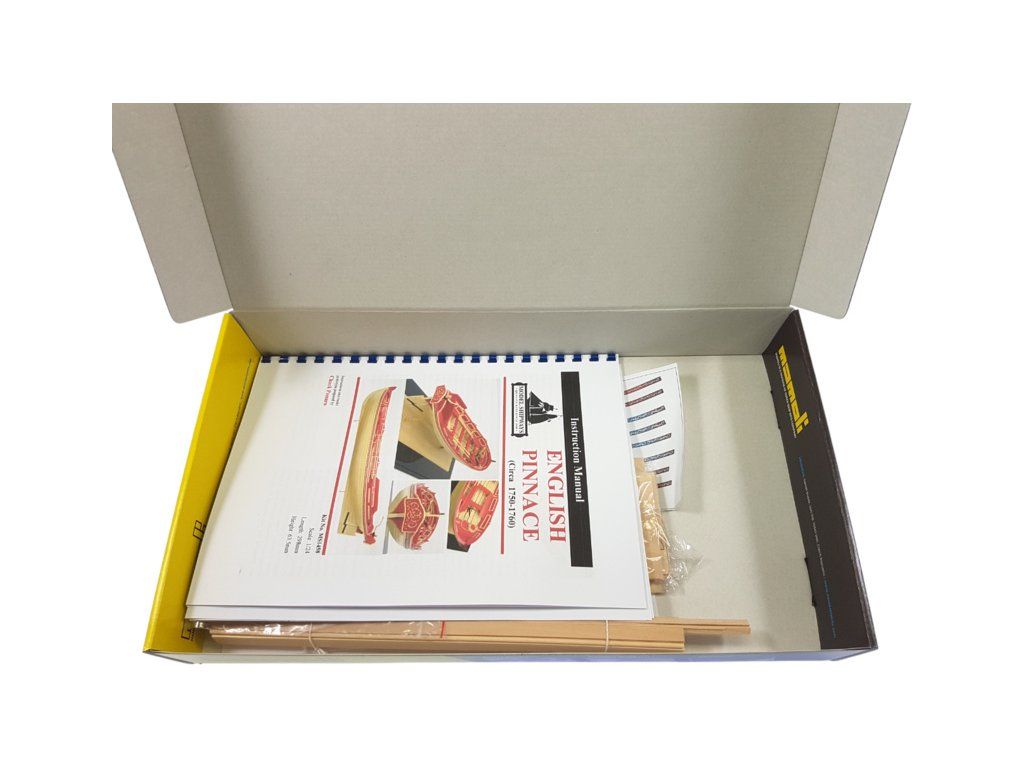 Stavebnice modelu lodi English Pinnace v měřítku 1:24. Délka je 298 mm, stavba převážně ze dřeva s mosaznými doplňky, odlitky a předtištěnými ozdobnými lemy, součástí stavebnice jsou stavební plány a návod. Klasická konstrukce trupu s žebrováním a plaňkami. Předlohou 21stopý anglický člun.