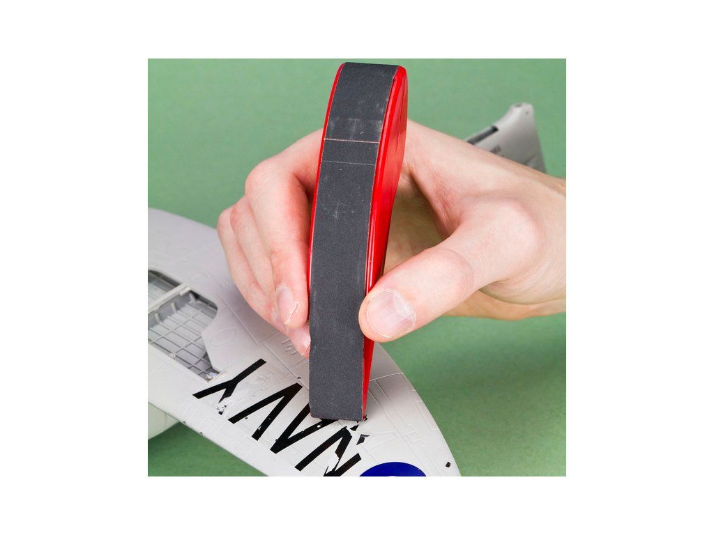Modelcraft brousítko s pružinou pro pásek o šířce 20 mm. V balení je pásek střední zrnitosti. Pružina napnutá vzadu udržuje pás na místě pro snadné broušení. Délka 135 mm, šířka 20/35 mm, hmotnost 39 g, výška 25 mm. Vhodné pro plošné i tvarové broušení.
