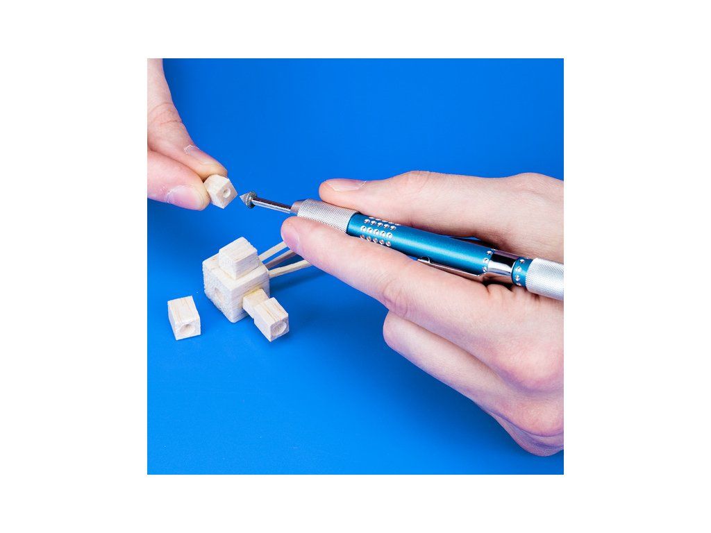 Čtyřdílná sada diamantových jehlových pilníků Modelcraft a rukojeť jsou výborným nástrojem na obrábění velmi tvrdých kovových součástí. Do rukojeti lze uložit výměnné nástroje, mají délku 45 až 65 mm a tvary kuželové špičaté dlouhý a krátký, plochý a kuželovitý odjehlovač. Délka rukojeti je 117 mm.