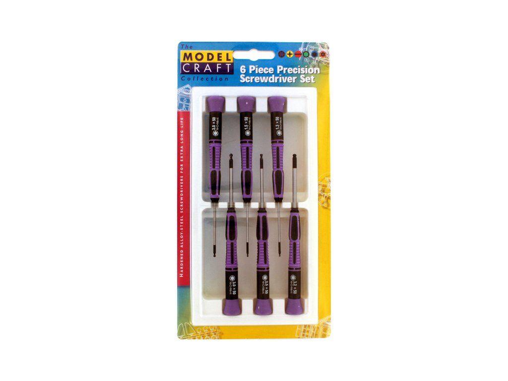 Modelcraft imbus šroubováky s kuličkou (sada 6ks), z nerezové oceli s pracovní částí s černou povrchovou úpravou z chromové oceli. Dříky mají stejný průměr jak rozměr šroubováku, délka dříku je 50 mm. Rozměry: 1.3 mm, 1.5 mm, 2.0 mm, 2.5 mm, 3.0 mm, 3.2 mm. Plastové ručky s otočnou hlavicí o délce 100 mm a průměru 12 mm.