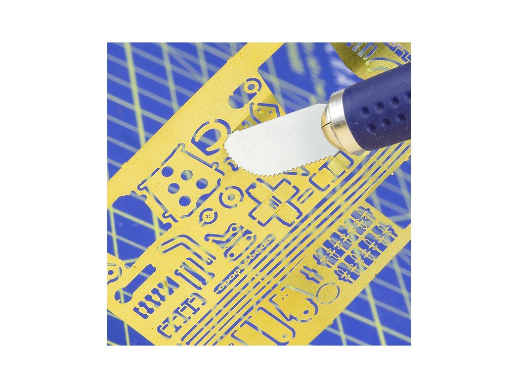 Modelcraft náhradní pilové čepele (sada 4ks) do setu SH-PKN0043. Obsahuje 4x mini pilové listy #11 s ozubením 0,24mm pro zvláště přesné řezy. Ideální pro fotoleptané díly, plasty a dřevo.