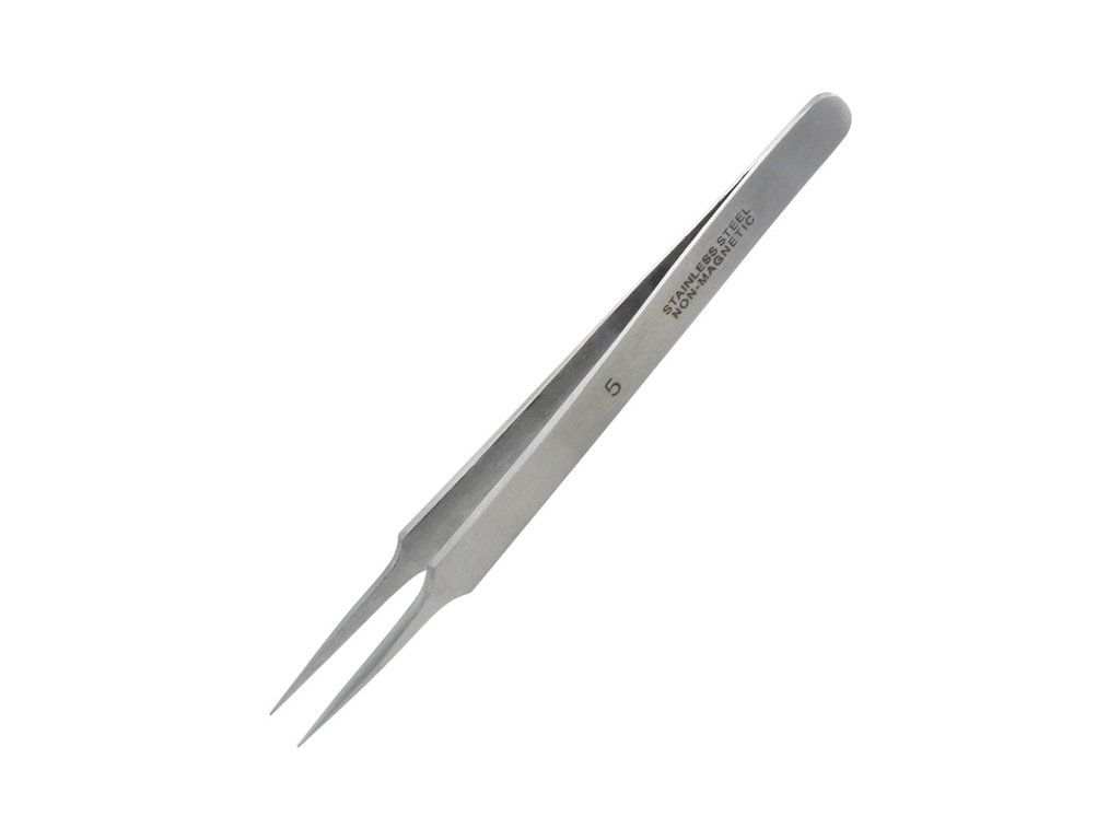 Modelcraft nerezová pinzeta super úzká s tenkou a dlouhou špičkou pro přesné držení a umístění malých až mikroskopických dílů a součástí. Odolává kyselinám, je nemagnetická. Délka 120mm, šířka 15mm, hmotnost 16g, roztažení špičky 5mm.