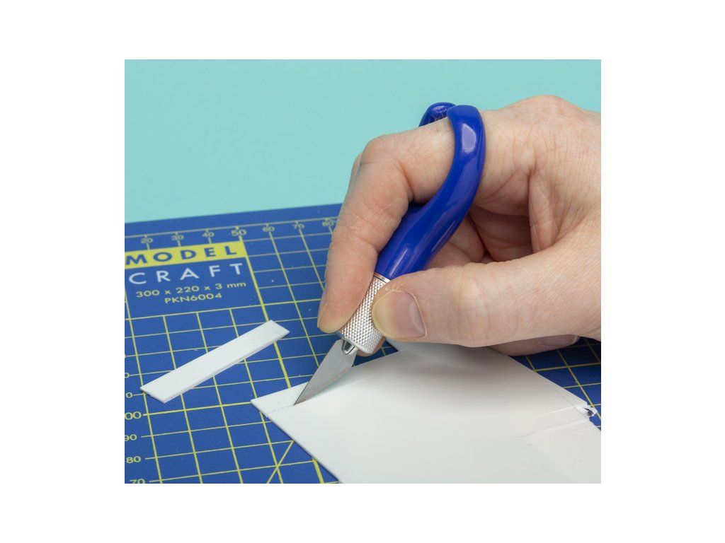 Modelcraft nůž na prst s pevnou čepelí, držák #1, 2 čepele #11. Speciální tvar rukojeti umožní přesné vedení břitu nástroje tím, že bude vaším prodlouženým prstem.